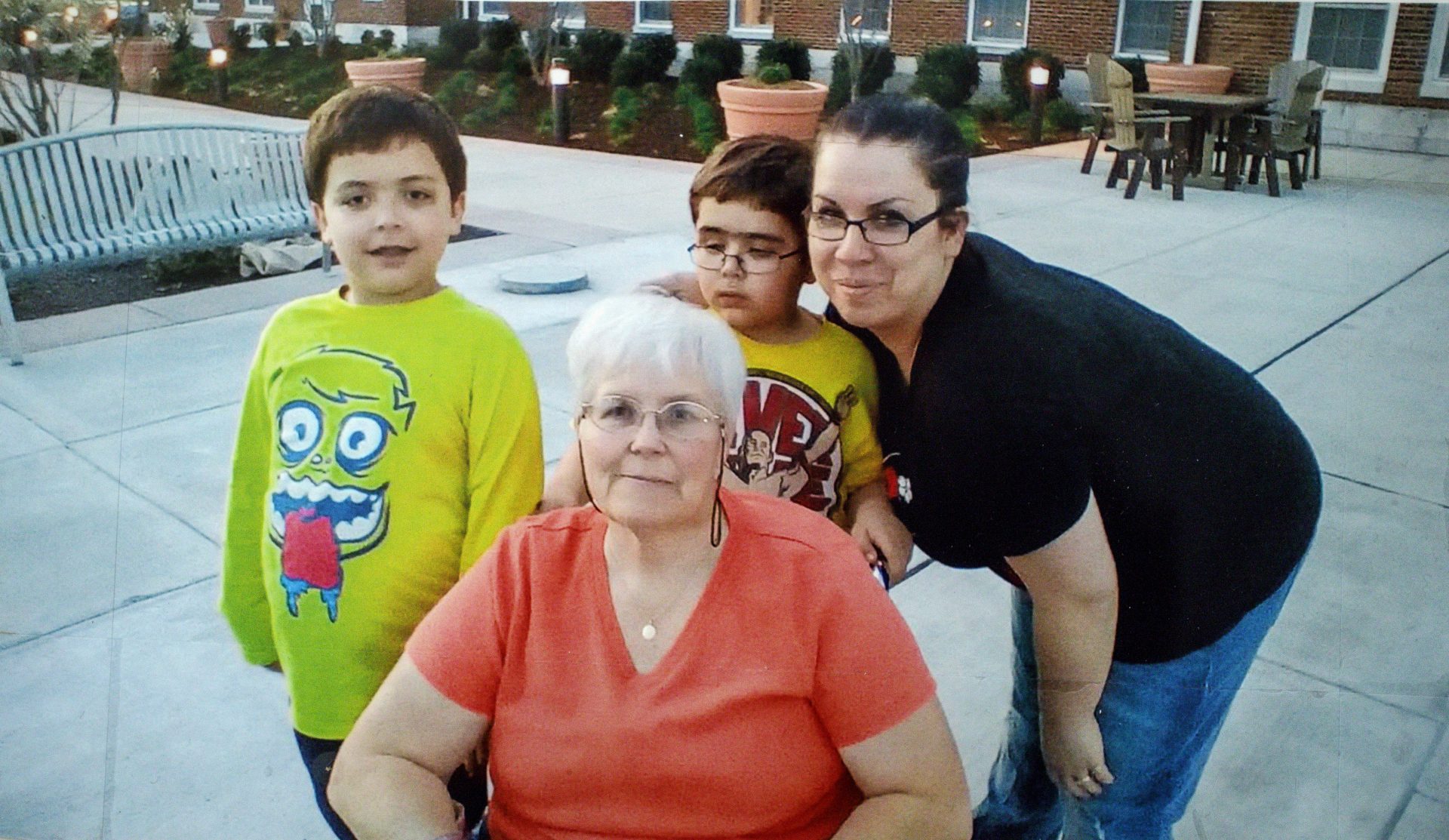 This photo shows Ashley Mantheiy with sons Benjamin and Drake with their grandmother Sharon.