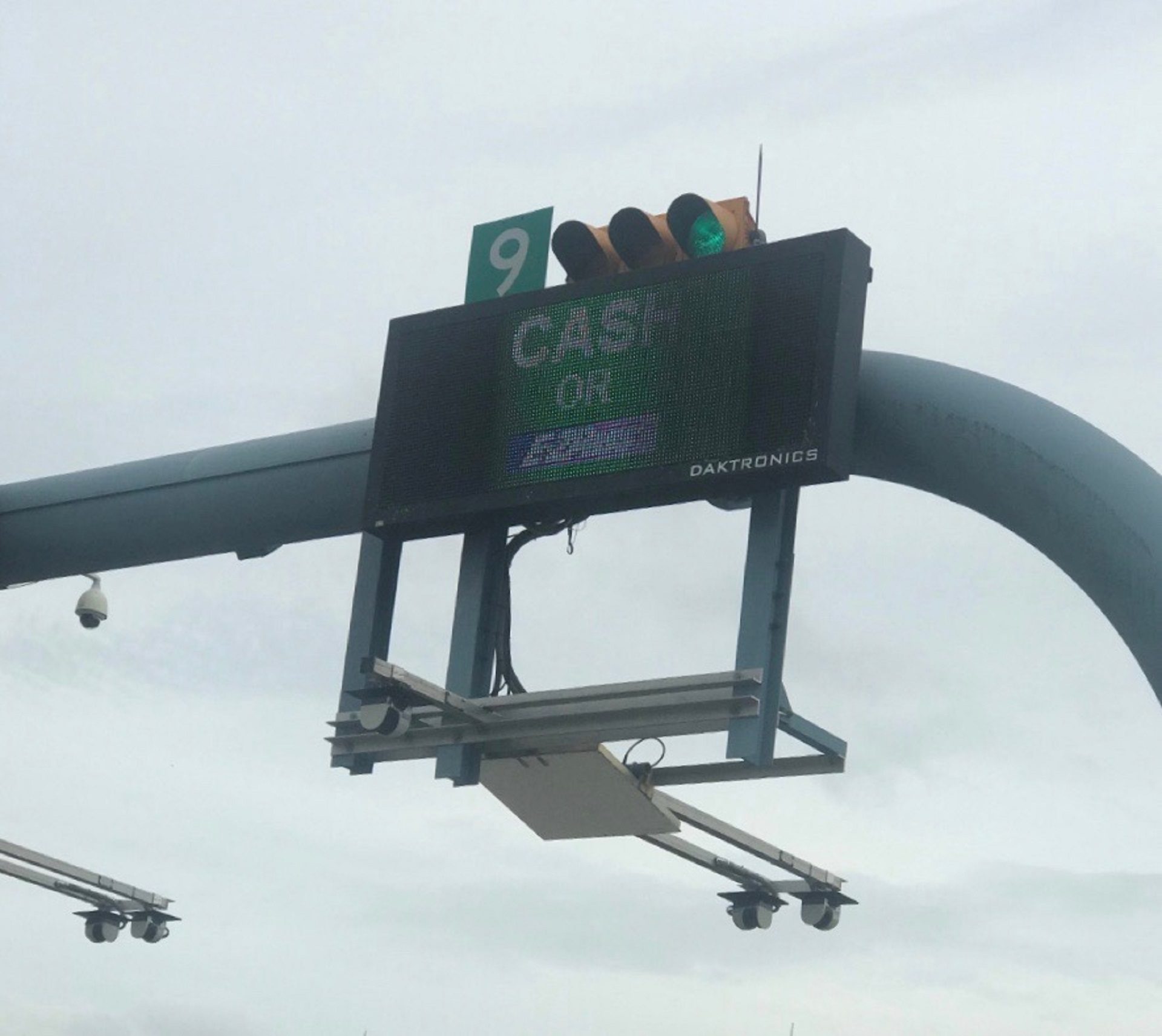 That equipment is located on the gantry a short distance before reaching the toll booth. DeFebo said it is the pizza box-shaped reader attached to the bottom of the sign that reads “E-ZPass Only No Cash.”