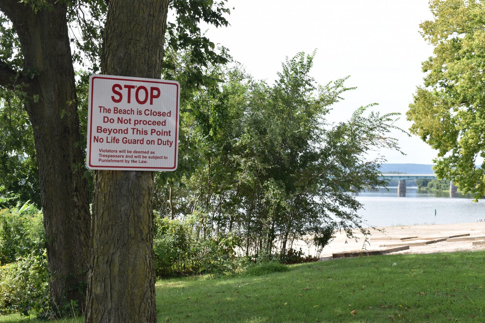 He had seen a TV report about high levels of E. coli bacteria in the river, and was surprised to hear that swimming was prohibited. He came over to see if there were any signs posted. “You know, because they said that there was no swimming allowed right now. But there’s not even a sign up here.”