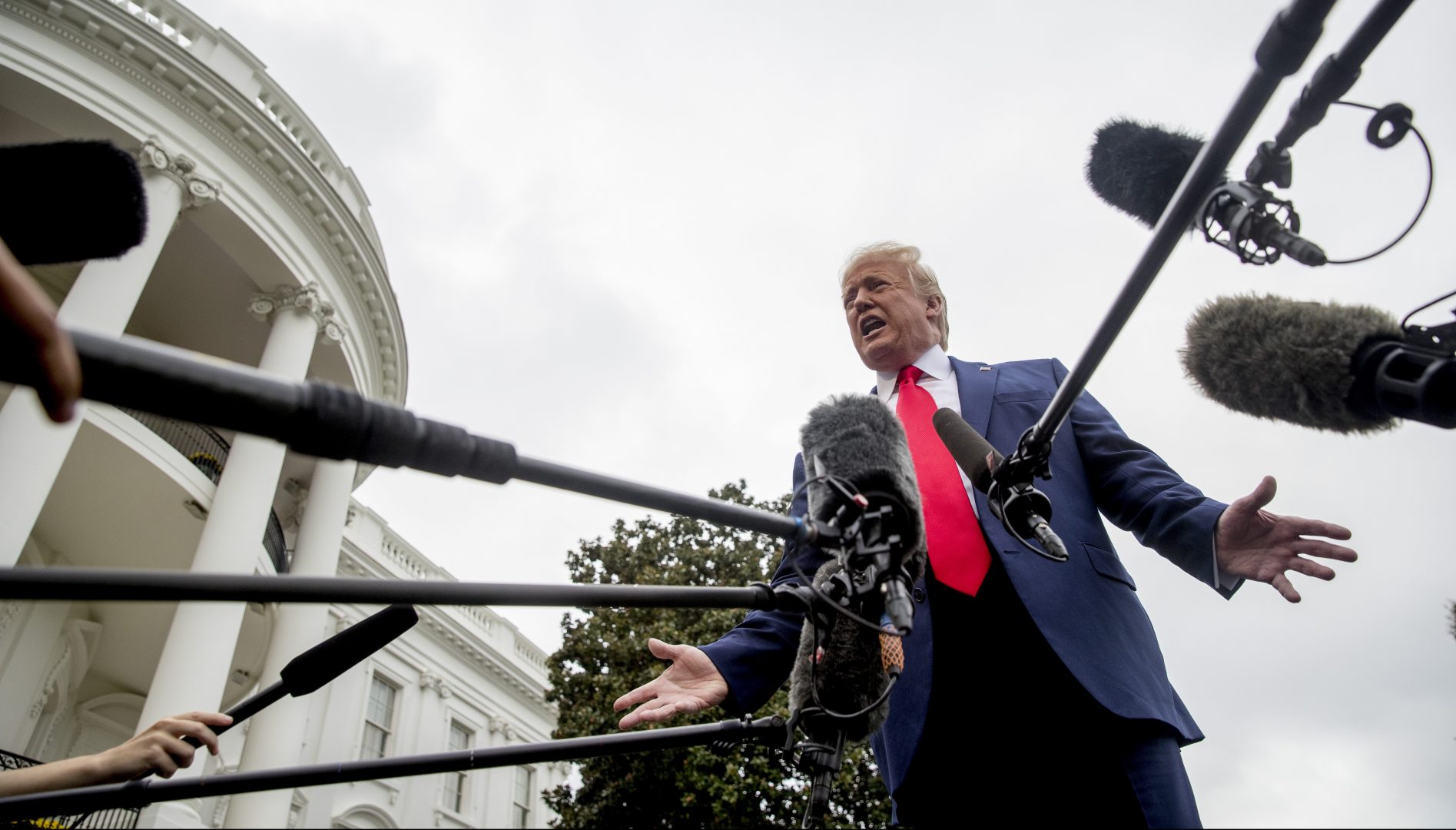President Donald Trump speaks to the media on the South Lawn of the White House in Washington, Thursday, Oct. 3, 2019, before boarding Marine One for a short trip to Andrews Air Force Base, Md., and then on to Florida.