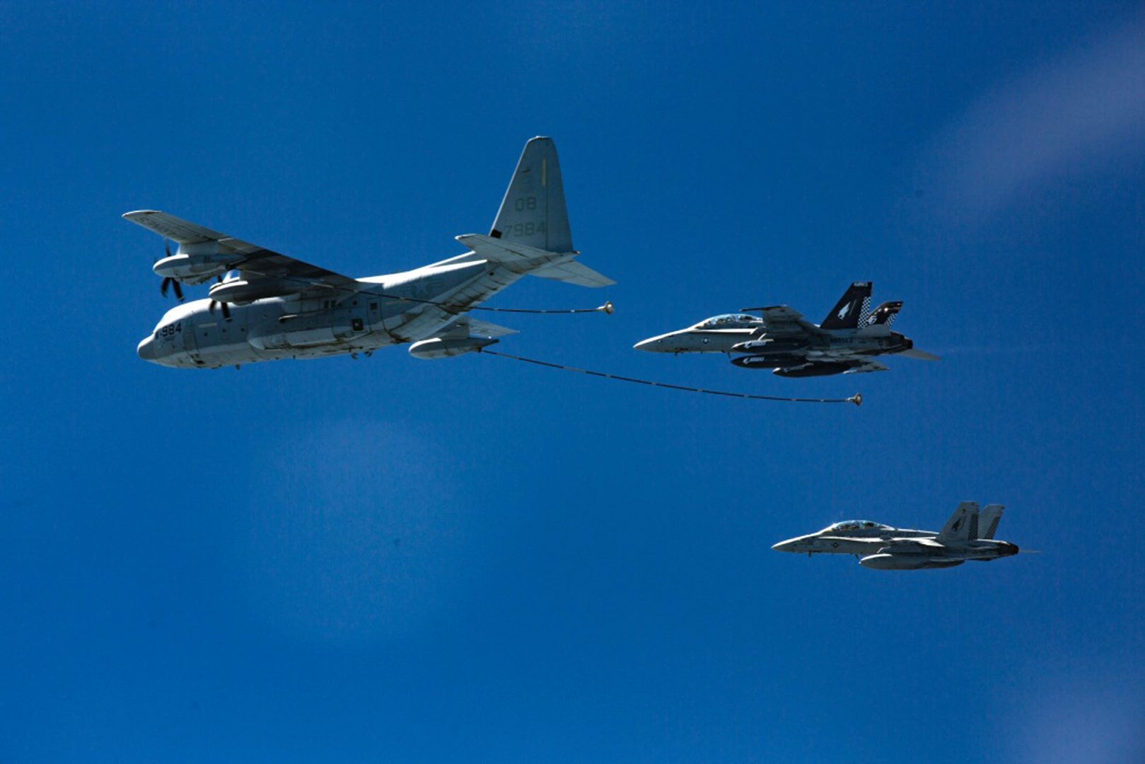 The second Hornet had connected to the tanker’s other fuel hose. As the gas poured in at a rate of hundreds of gallons a minute, the three Marine Corps aircraft turned a wide, careful oval inside the safety of their approved airspace.