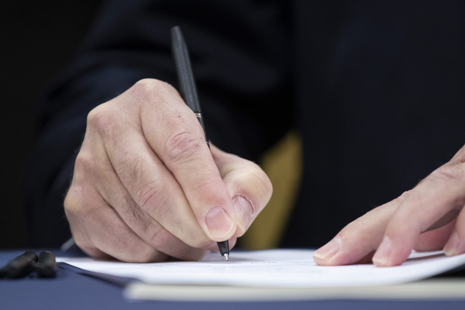 Gov. Tom Wolf signs legislation into law at Muhlenberg High School in Reading, Pa., Tuesday, Nov. 26, 2019. Wolf approved legislation Tuesday to give future victims of child sexual abuse more time to file lawsuits and to end time limits for police to file criminal charges.