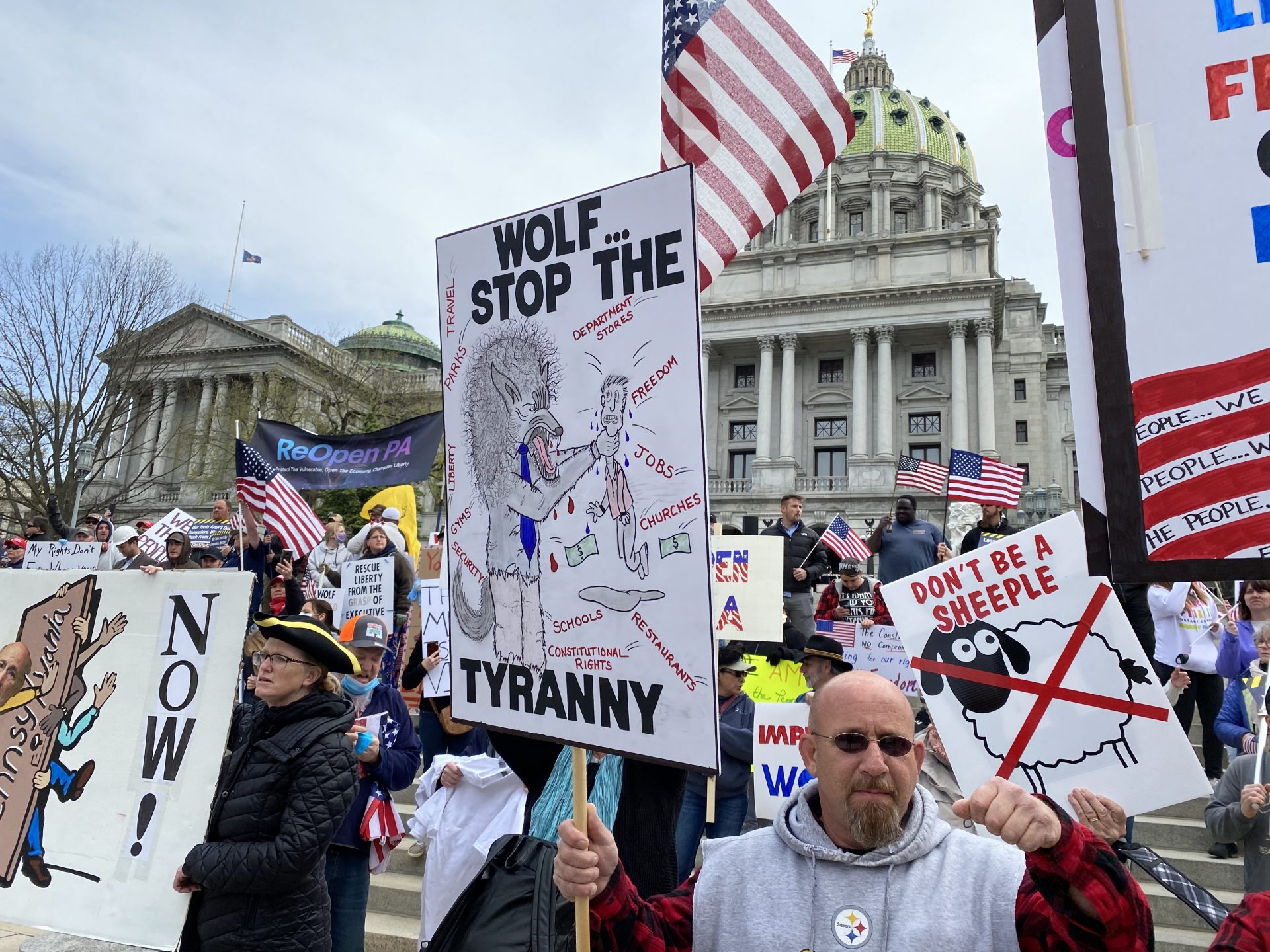 As protesters gathered outside the Capitol, Wolf said Monday he is extending his stay-at-home order until May 8 but will allow some construction projects to reopen then. He said he had not seen firsthand the protesters who were gathered in Harrisburg, but said he respected their right to express themselves.