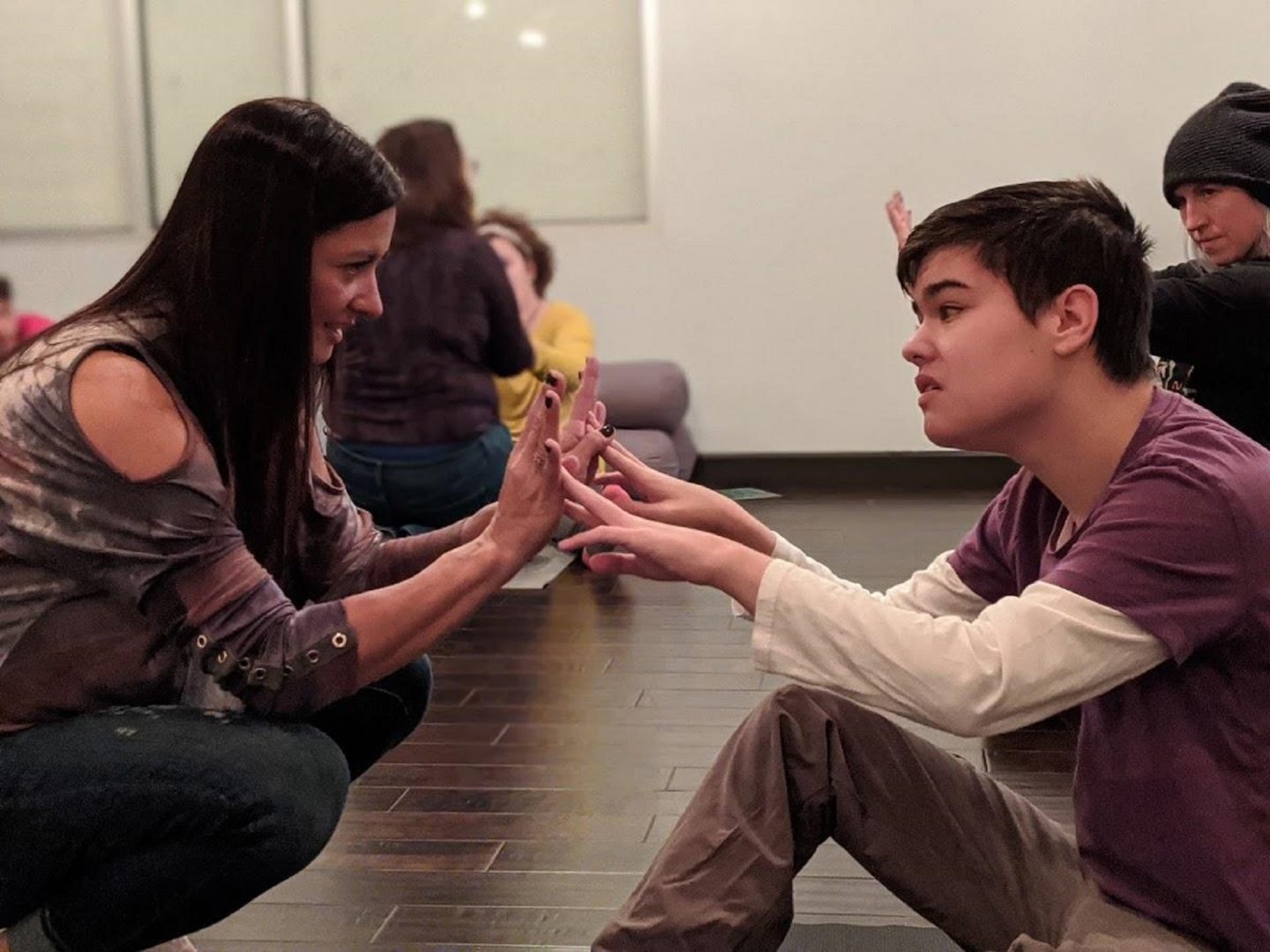 Jen Evashavik helps her son Luke do yoga while instructor Megan Sicheri watches, at Harts Run Fitness in Glenshaw on Saturday, Dec. 7, 2019.
