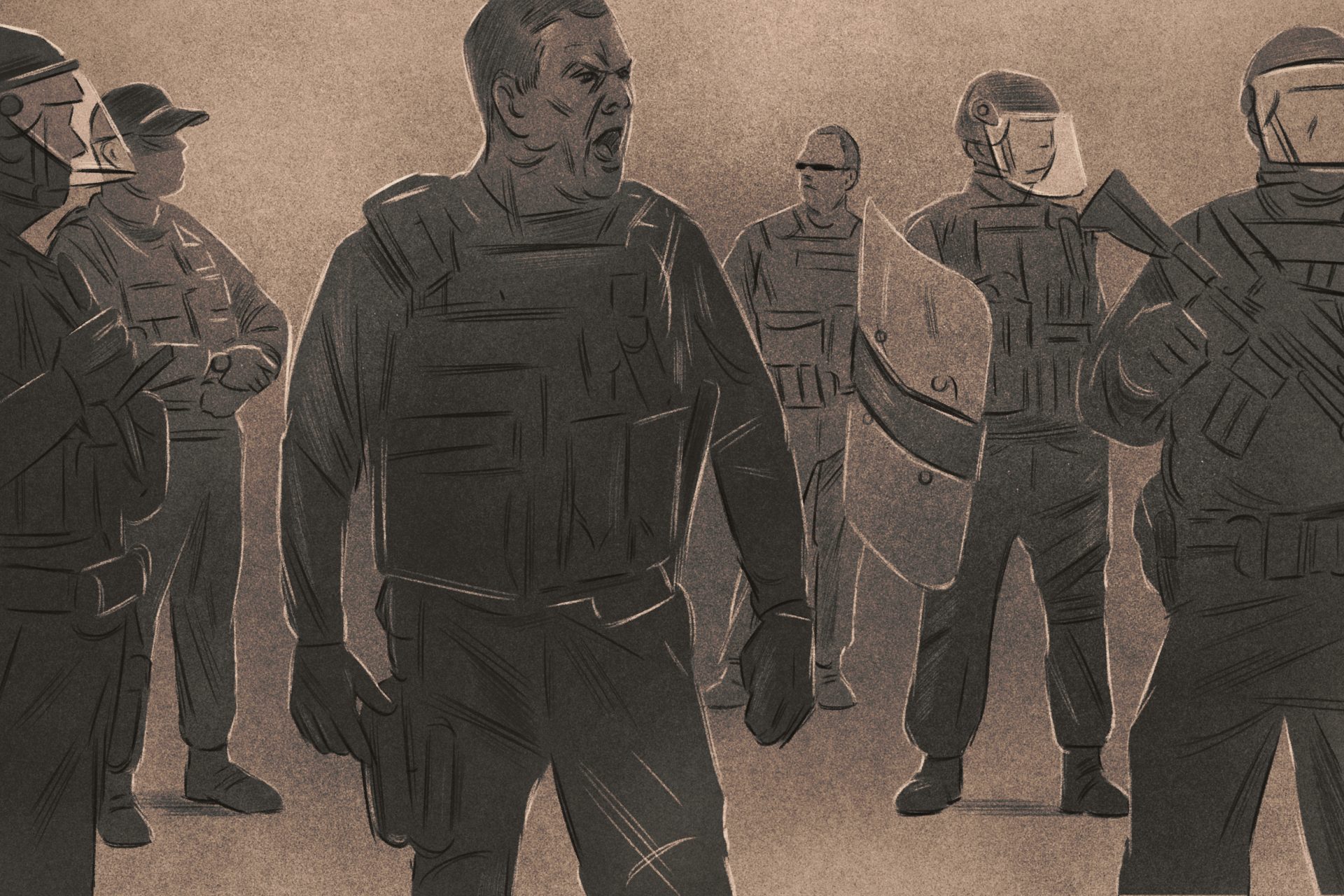 Bernardo says he did as he was told. He didn’t want to test what an electrified shield felt like. And he’d been hit with a pepper-ball gun in the past. “It’s not very fun,” he says. “It’s like getting shot with a paintball gun, but when you inhale, it’s pepper dust.”