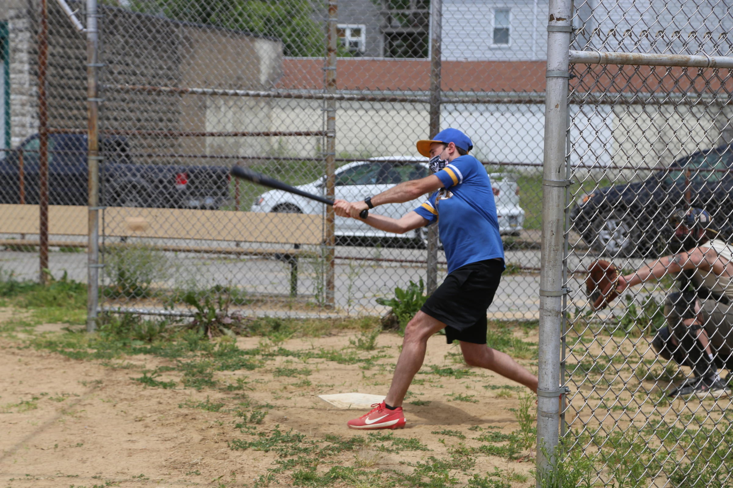 Jesse Caggino, wearing an Allegheny A’s t-shirt, bats at a Dock Ellis League game on Sunday, June 14, 2020.