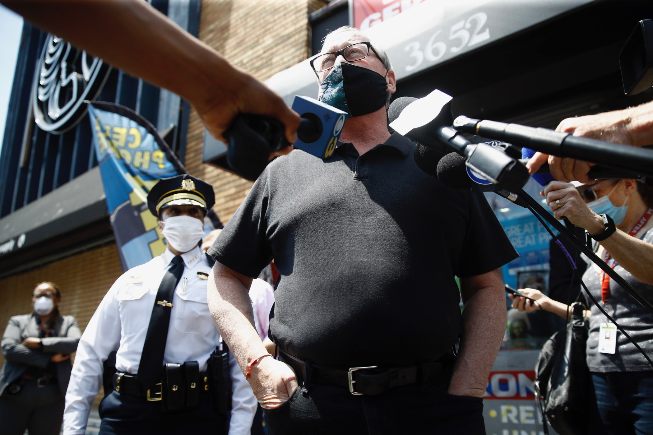 Philadelphia Mayor Jim Kenney speaks with the media, Thursday, June 4, 2020, in Philadelphia after days of protest over the May 25 death of George Floyd, who died after being restrained by police in Minneapolis.