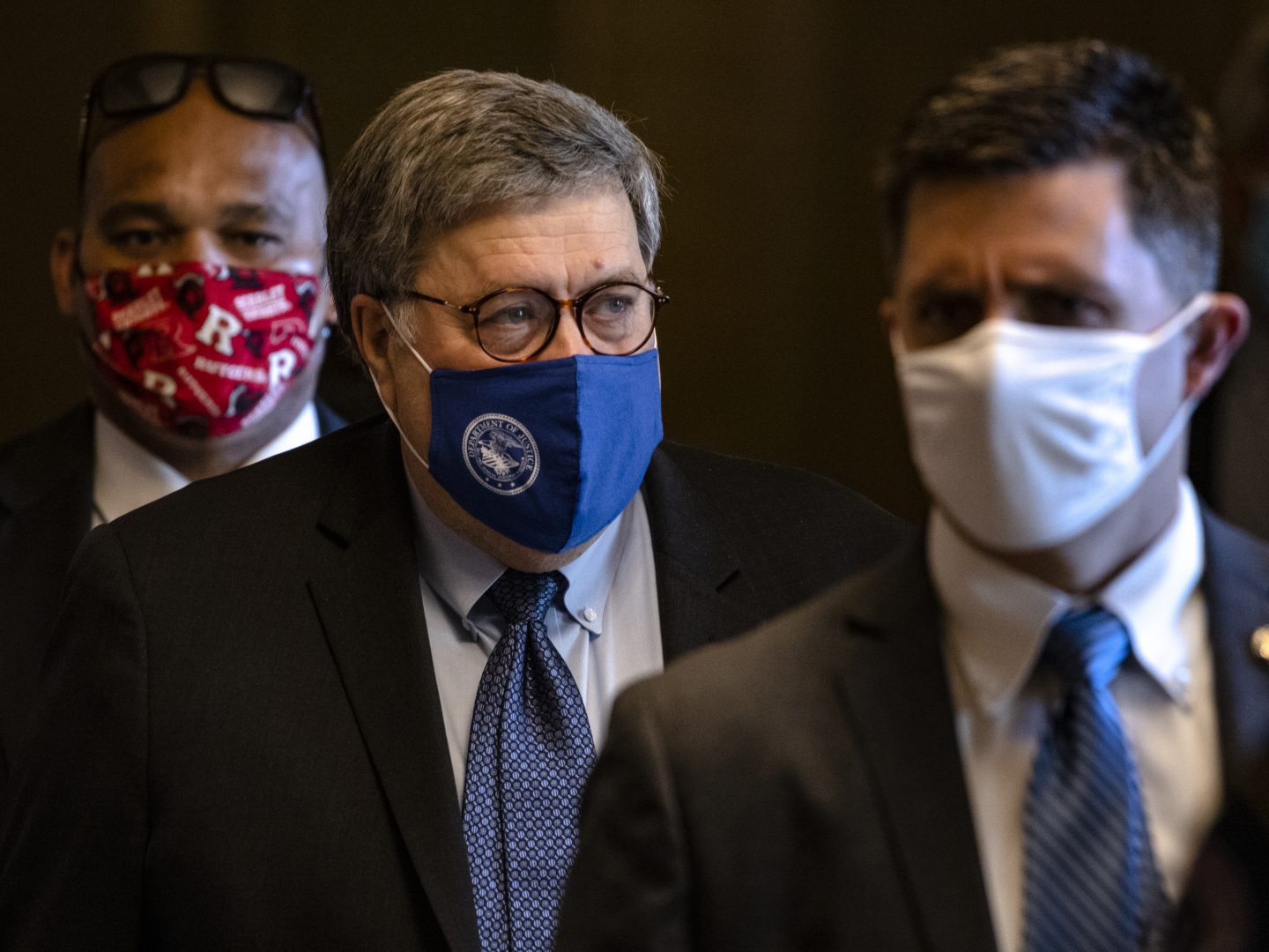 Attorney General Bill Barr leaves the US Capitol after meeting with Senate Majority Leader Mitch McConnell (R-KY) in his office on November 9, 2020 in Washington, DC.