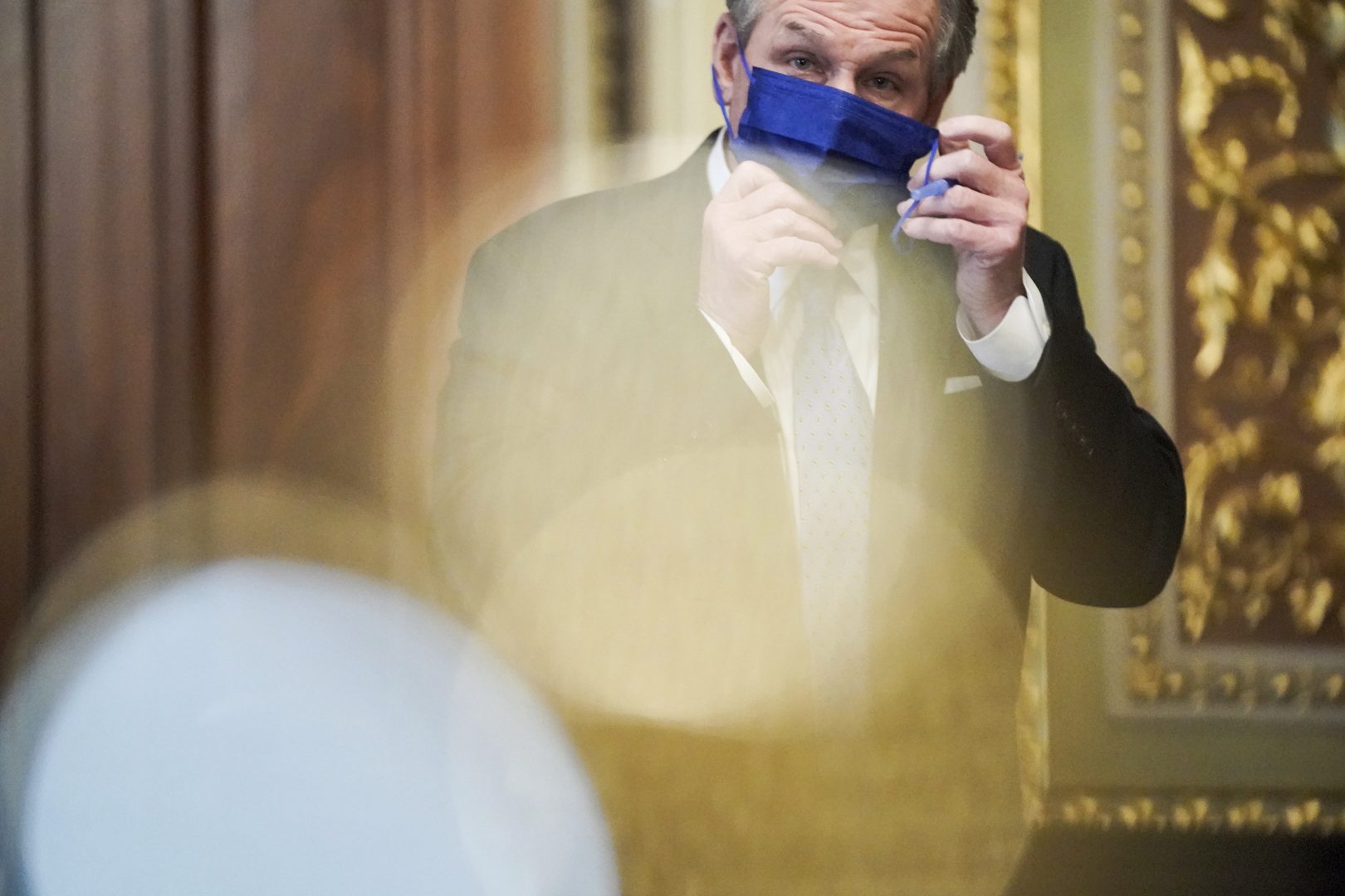 Michael van der Veen, lawyer for former President Donald Trump, returns to the Senate chamber after a break during the fifth day of the second impeachment trial of former President Trump, Saturday, Feb. 13, 2021 at the Capitol in Washington. (Greg Nash/Pool via AP)