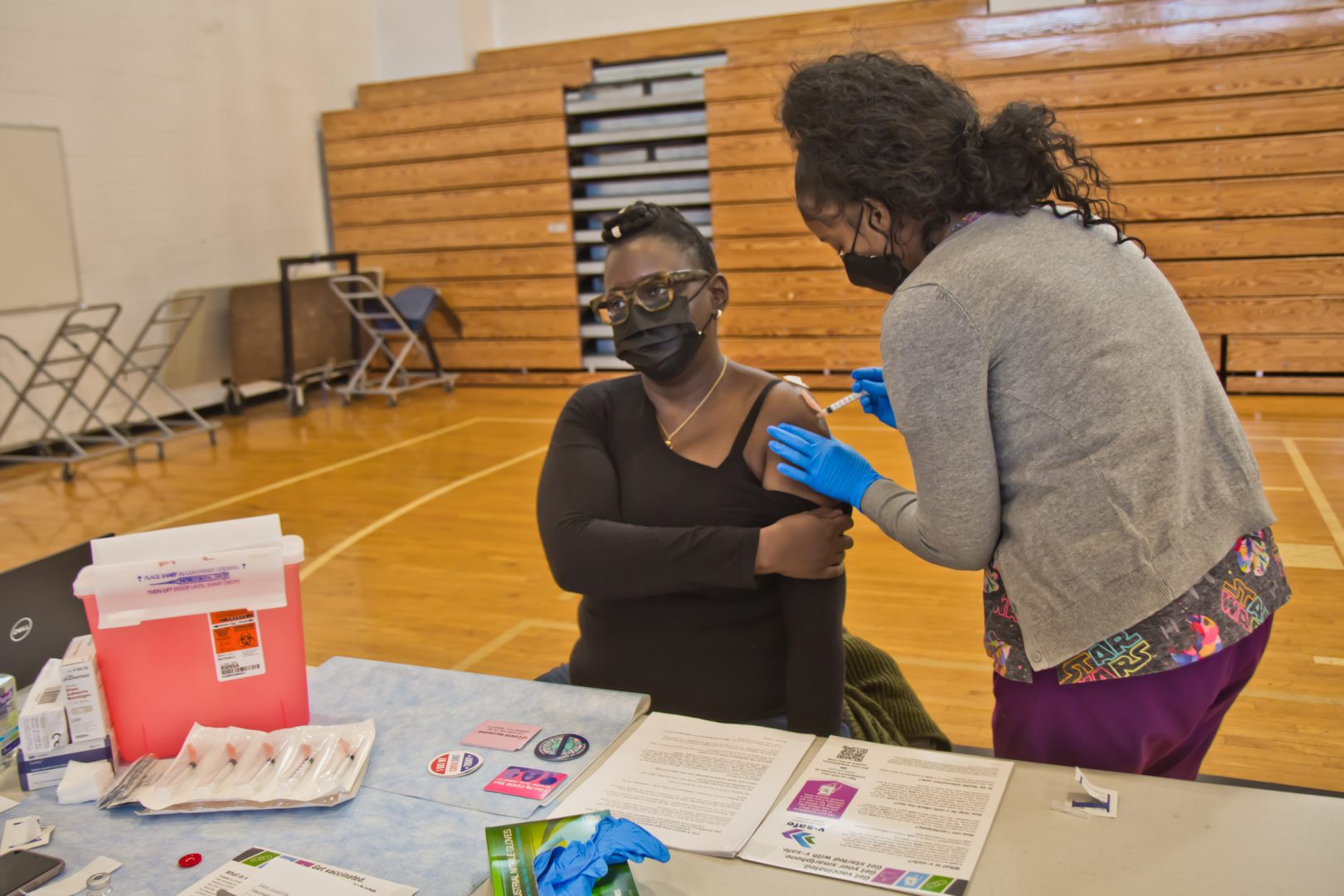 Bartram High School school nurse Monica Harmon said she was excited to receive the Moderna COVID-19 vaccine at the city’s school nurse vaccination clinic Friday morning.