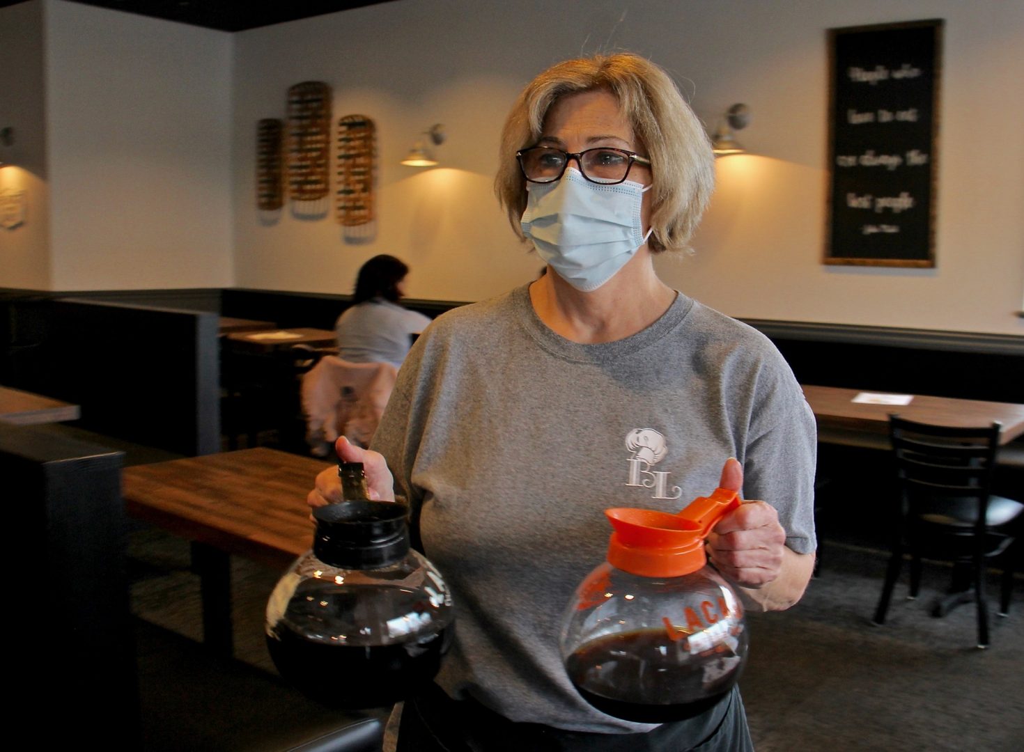 Laura Tierney, manager of Bonnet Lane Family Restaurant in Abington, Pa., serves customers in the dining room.