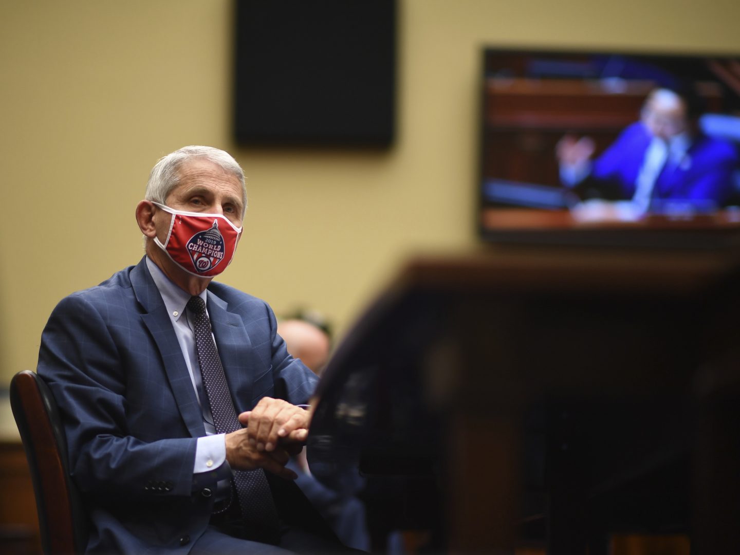 Dr. Anthony Fauci, director of the National Institute for Allergy and Infectious Diseases, listens during a House Subcommittee on the Coronavirus crisis hearing, Friday, July 31, 2020 on Capitol Hill in Washington.