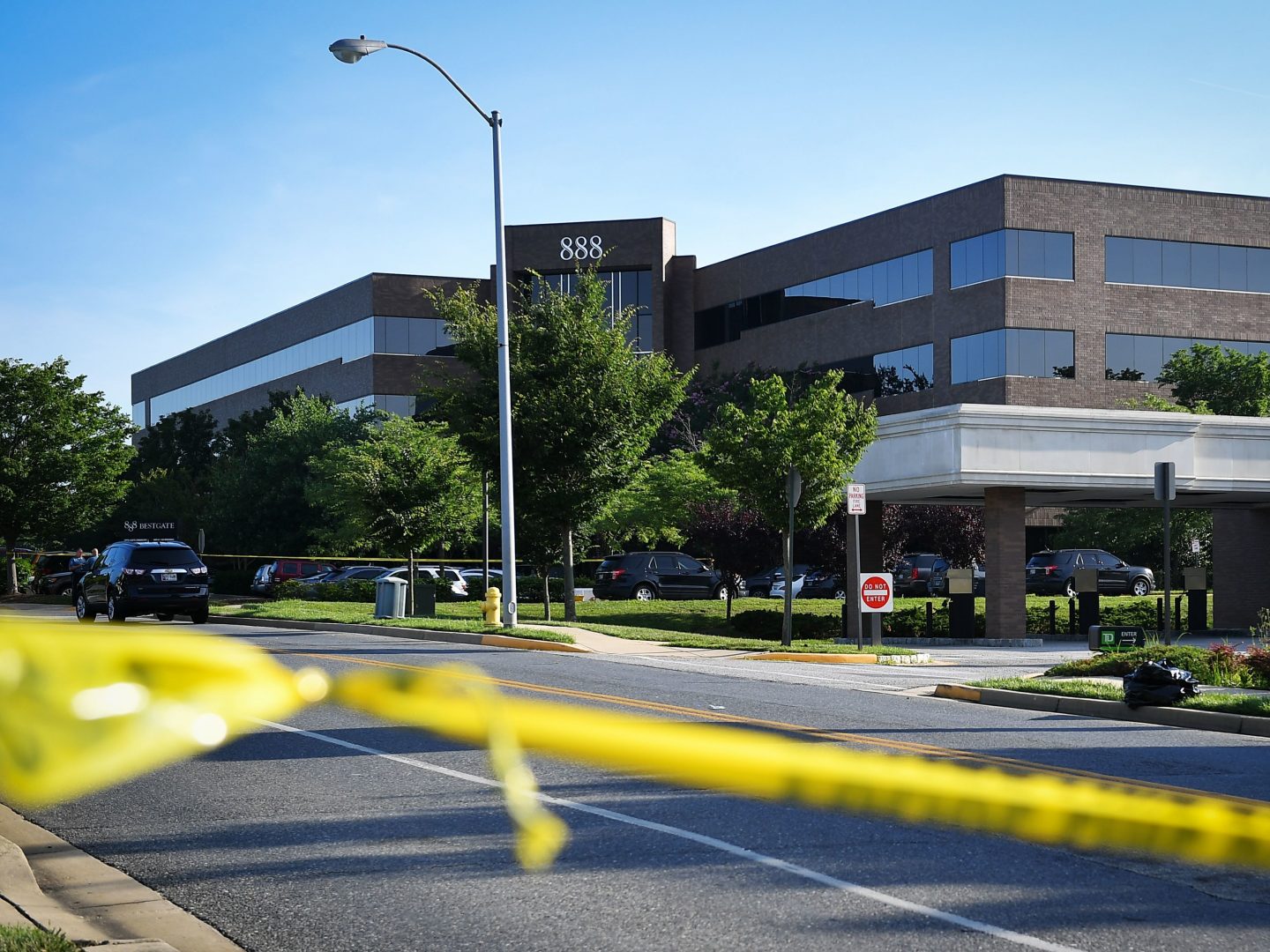 Police tape blocks access from a street leading to the building complex where The Capital Gazette is located on June 29, 2018, in Annapolis, Maryland. - Jarrod Ramos, suspected of carrying out a deadly assault on the newspaper office, had barricaded a back door in an effort to "kill as many people as he could kill," police said.