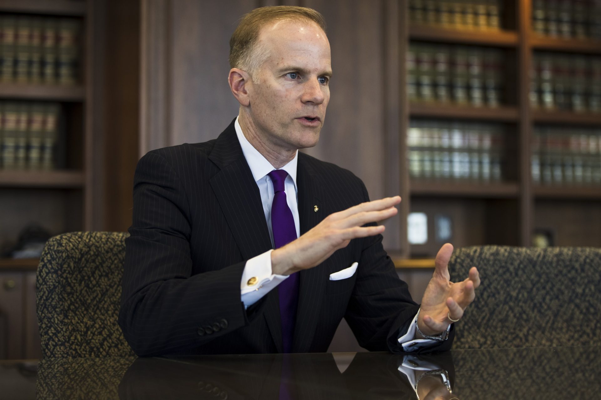 In this Oct. 17, 2018 photo, U.S. Attorney William McSwain speaks during an interview with The Associated Press in Philadelphia.