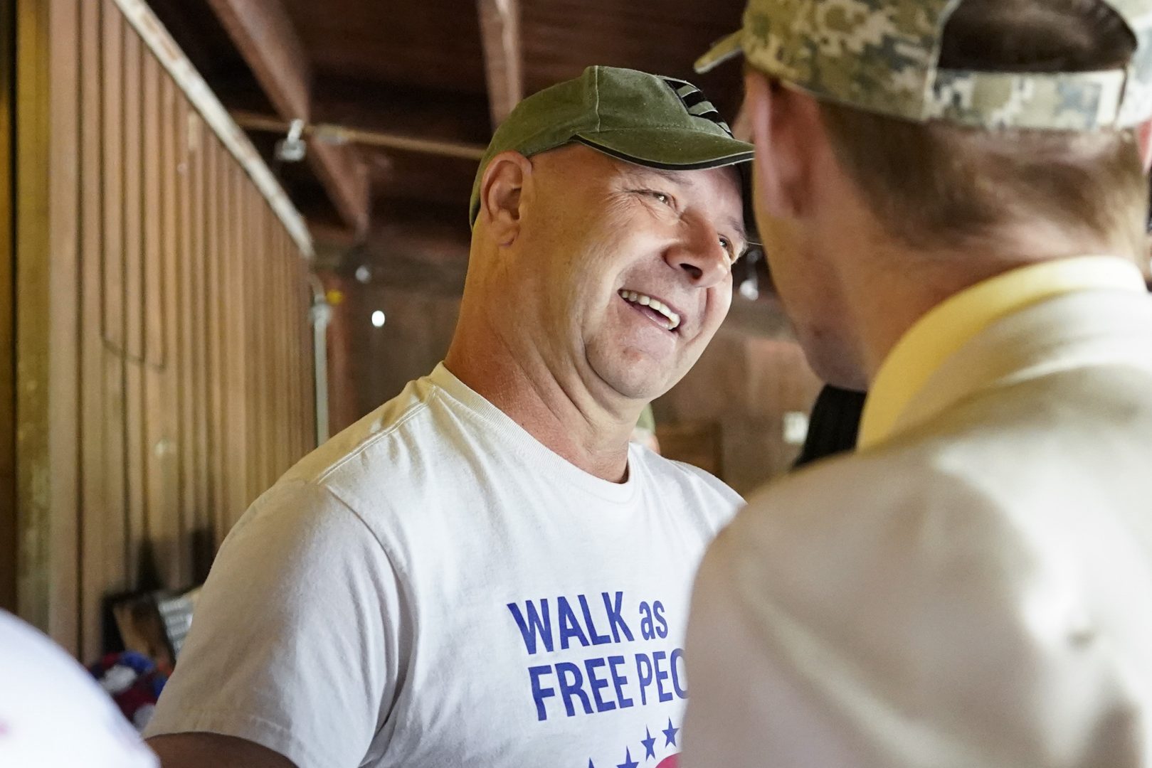 Pennsylvania state Sen. Doug Mastriano, R-Franklin, left, a Republican running for Governor of Pennsylvania, greets a supporter at a campaign stop Tuesday, May 10, 2022, in Portersville, Pa. (AP Photo/Keith Srakocic)