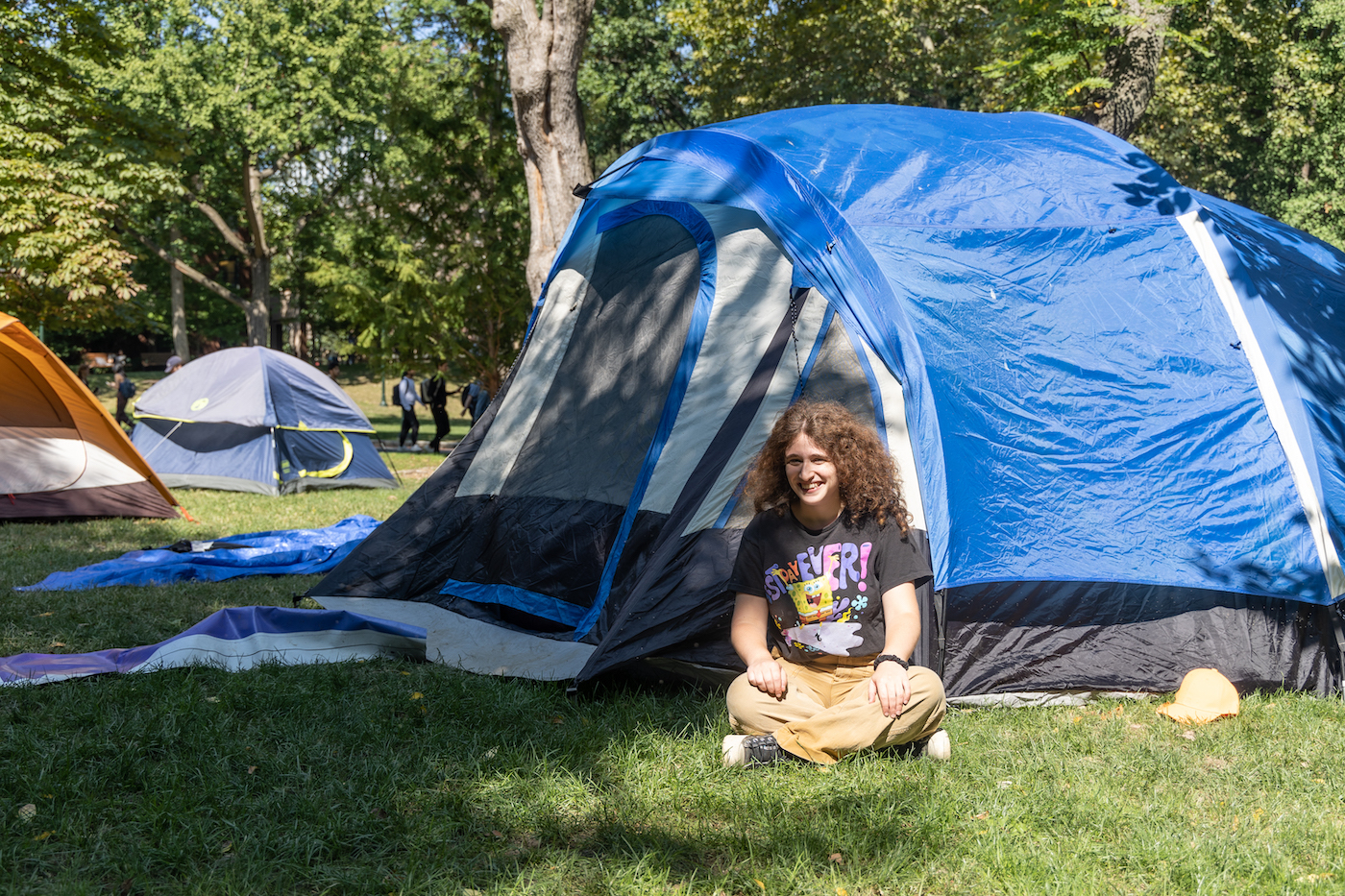 Sarah Sterinbach, a University of Pennsylvania student organizer with Fossil Free Penn, camped outside the administration building to demand the school divest from fossil fuels, on September 15, 2022.