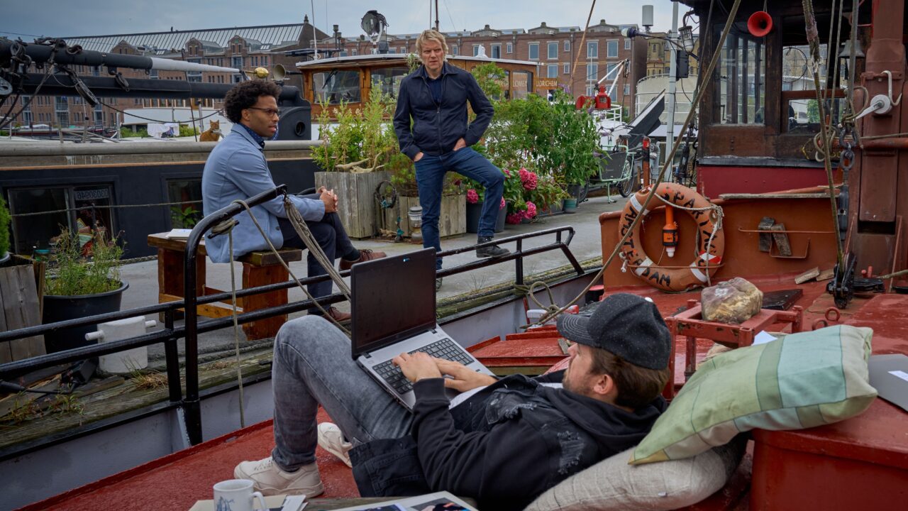 MASTERPIECE Mystery! "Van der Valk" Season 2, Episode Three, “Payback in Amsterdam” Shown from left to right: Elliot Barnes-Worrell as Job Cloovers and Marc Warren as Piet Van der Valk