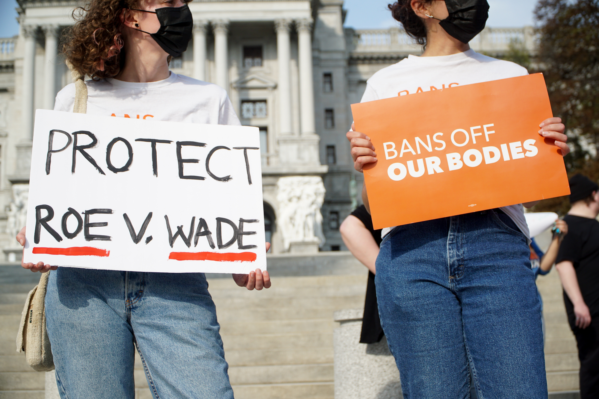 More than 30 people gathered outside of the state Capitol on May 3, 2022 to protest the leaked draft U.S. Supreme Court opinion that would reverse Roe v. Wade.