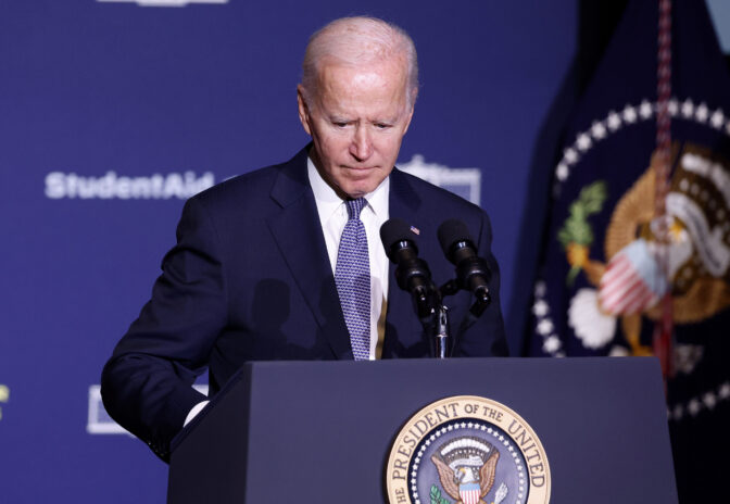 U.S. President Joe Biden gives remarks on student debt relief at Delaware State University on October 21, 2022 in Dover, Delaware. (Photo by Anna Moneymaker/Getty Images)