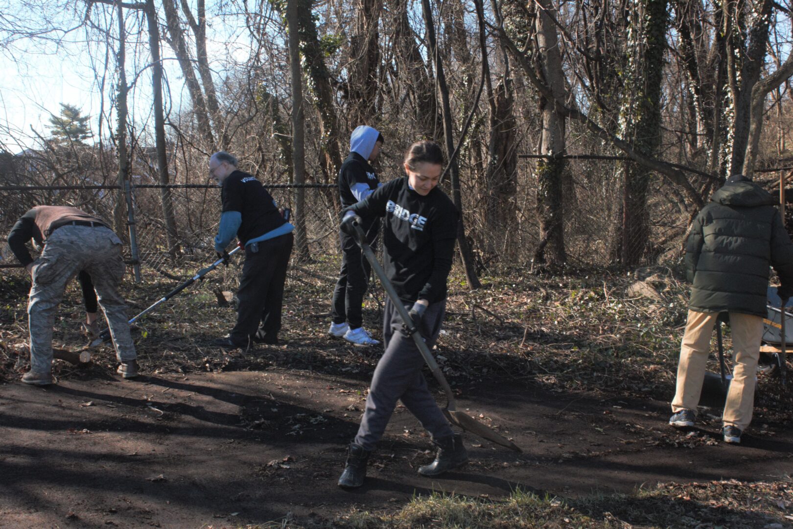 About 50 people showed up to clear debris from what used to be a football field for the Bishop McDevitt High School in Harrisburg. Some volunteers were working on preparing the bleachers in elevated gardens. The goal was to prepare the space for spring planting and make more room for crops.