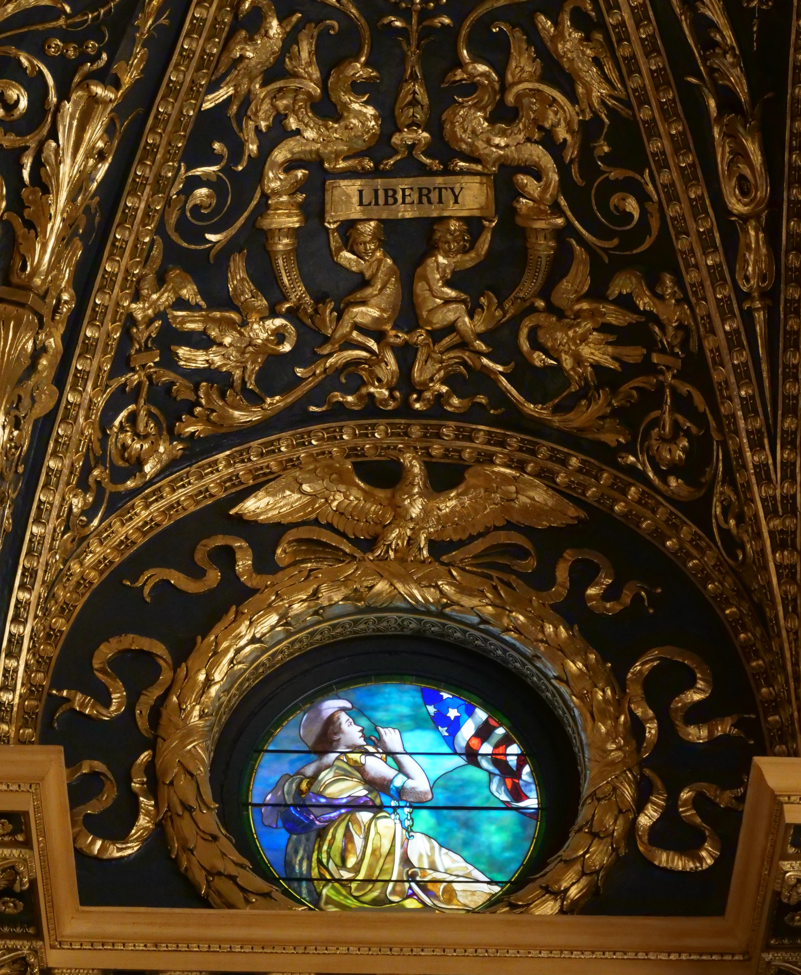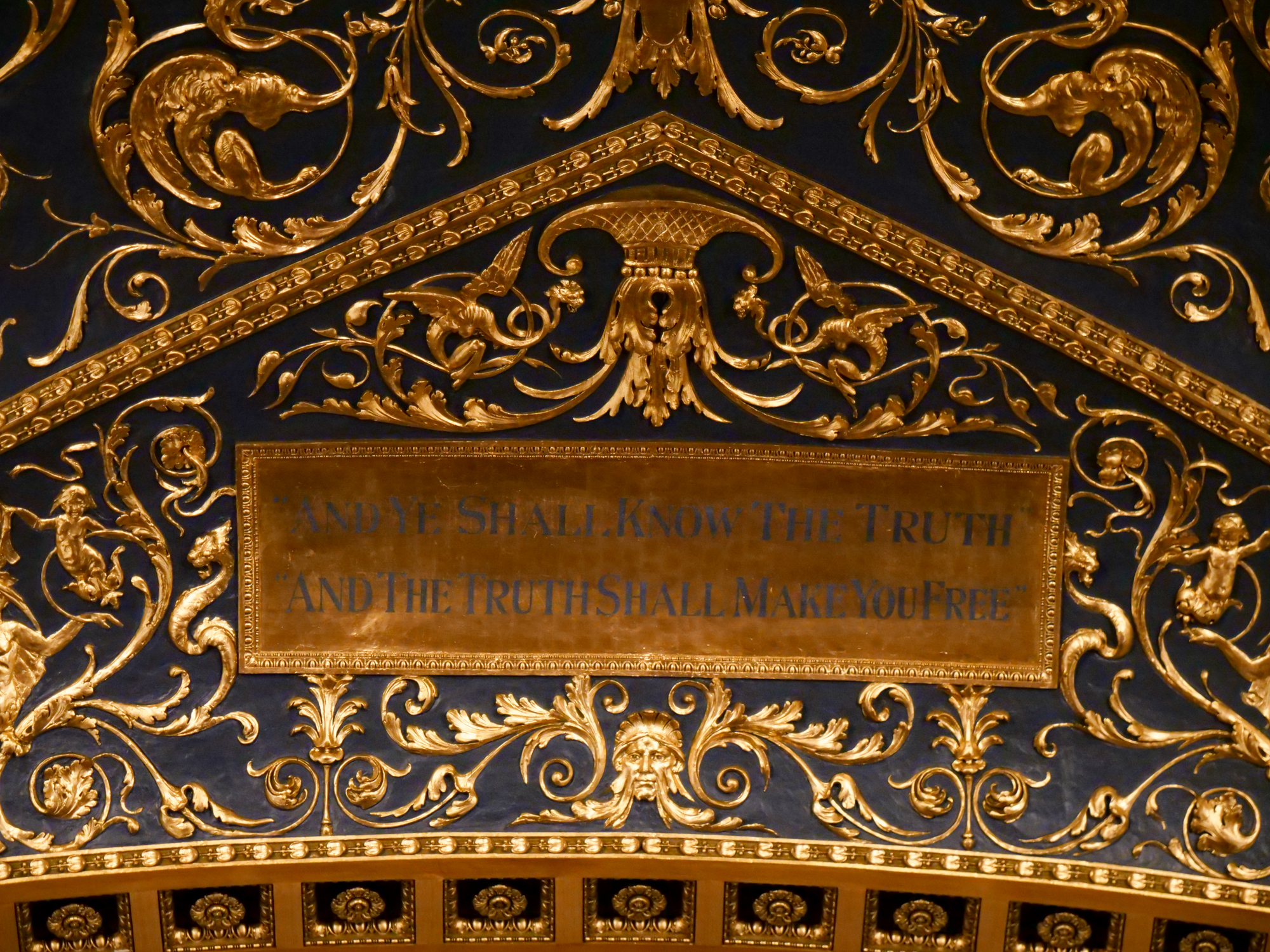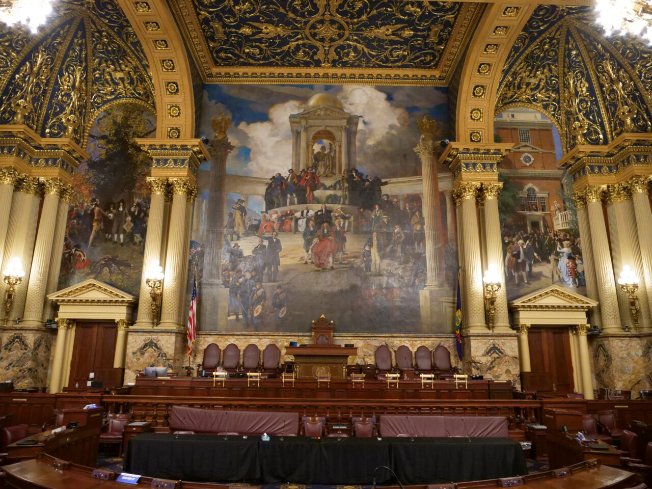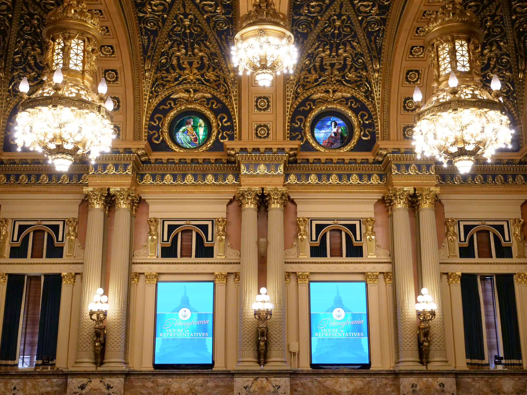 The ceiling of the Pennsylvania House of Representatives, etched in gold, the core values or our commonwealth: