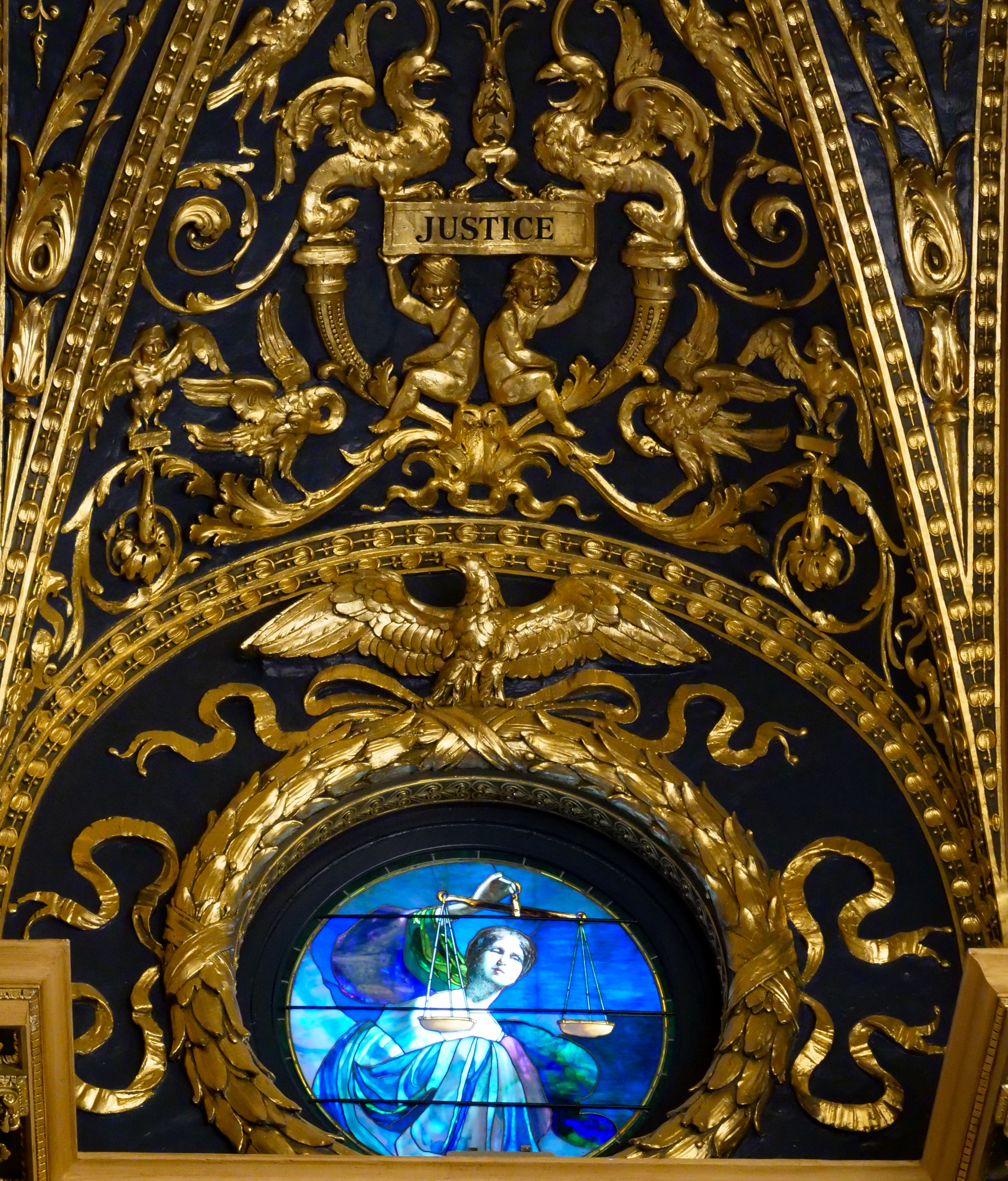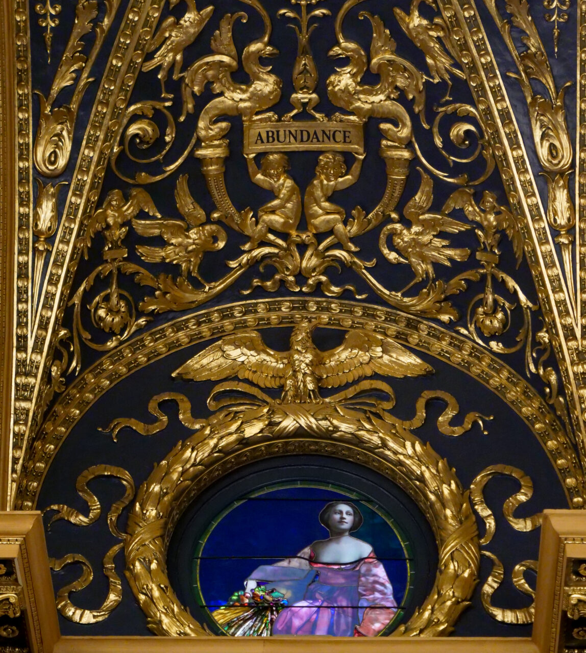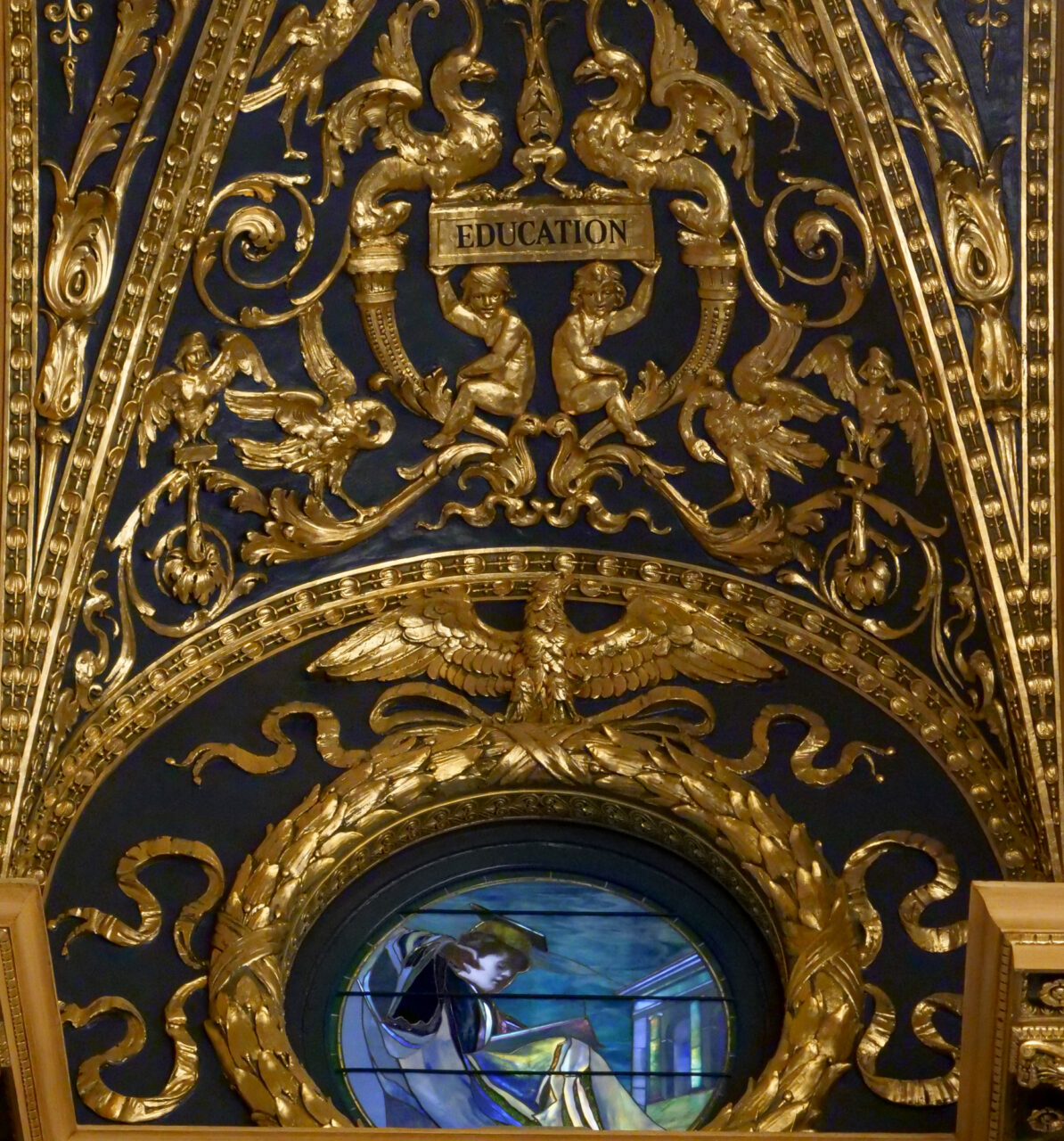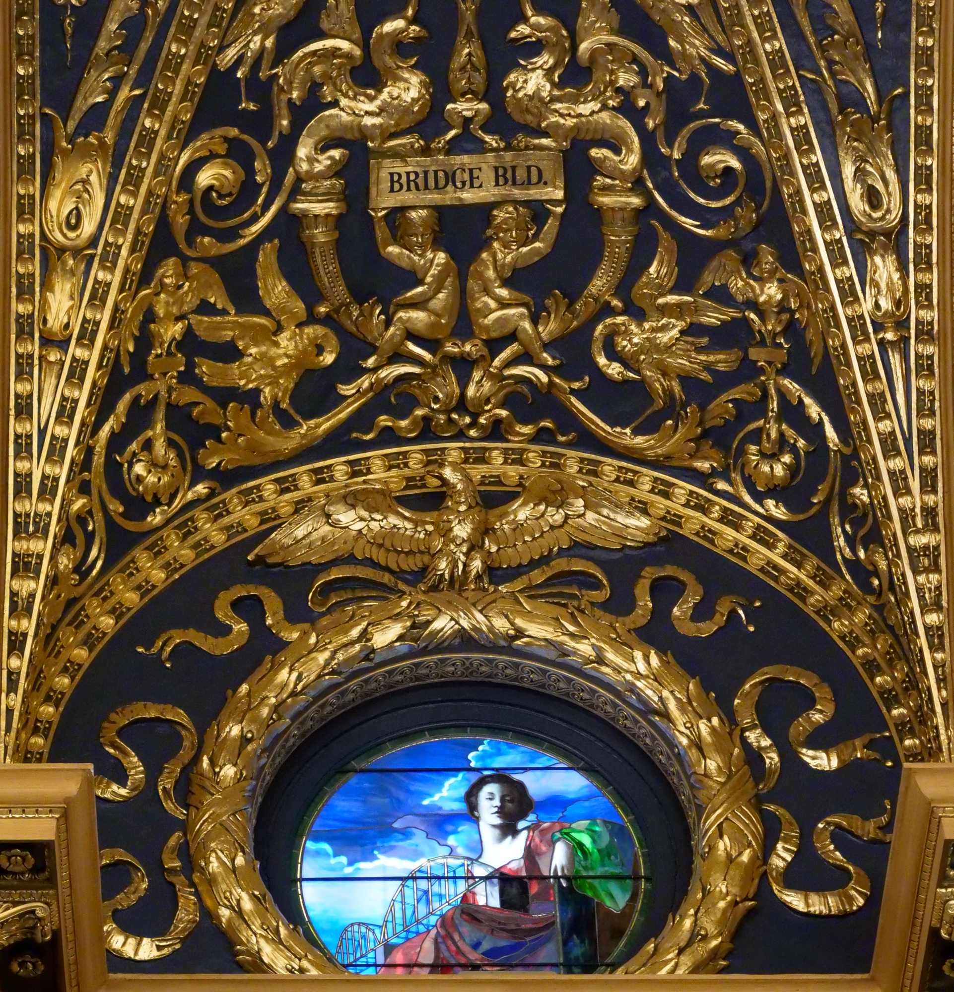 The pictures, tweeted by SEIU 668 President Steve Catanese, show a 24-karat-gold leaf-clad panel that hangs above the window, depicting a woman clothed in green.