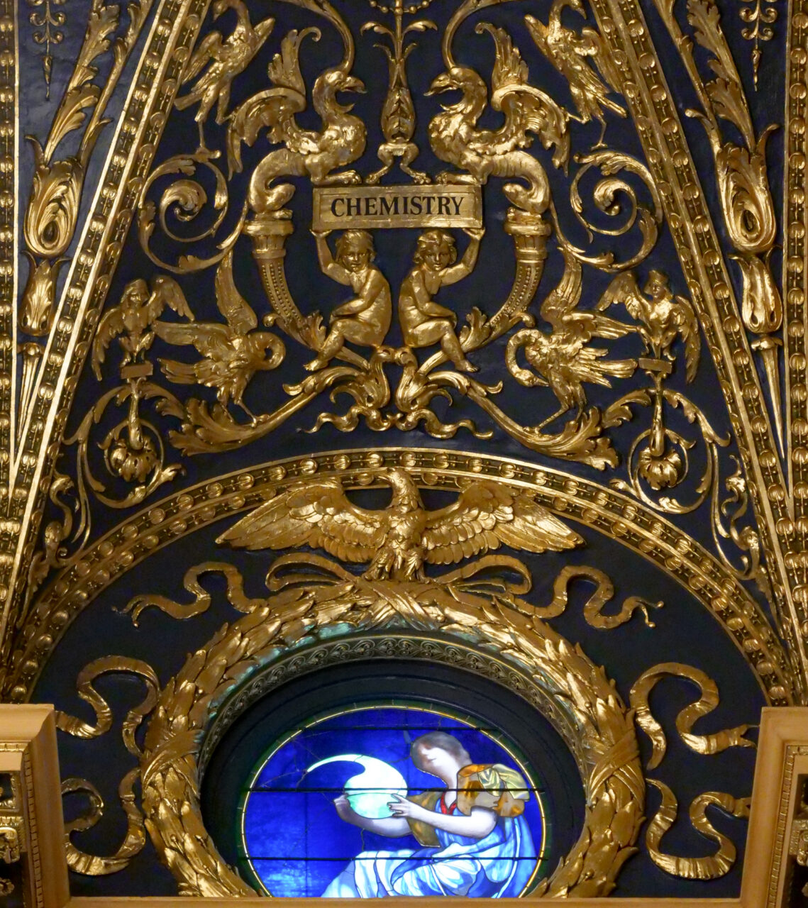 The window in question is a more-than-100-year-old circular, stained glass porthole, which can be seen up close from the floor of the House chamber. The area is typically reserved for state lawmakers and privileged guests, but one visitor managed to snap a few photos of the artwork recently.
