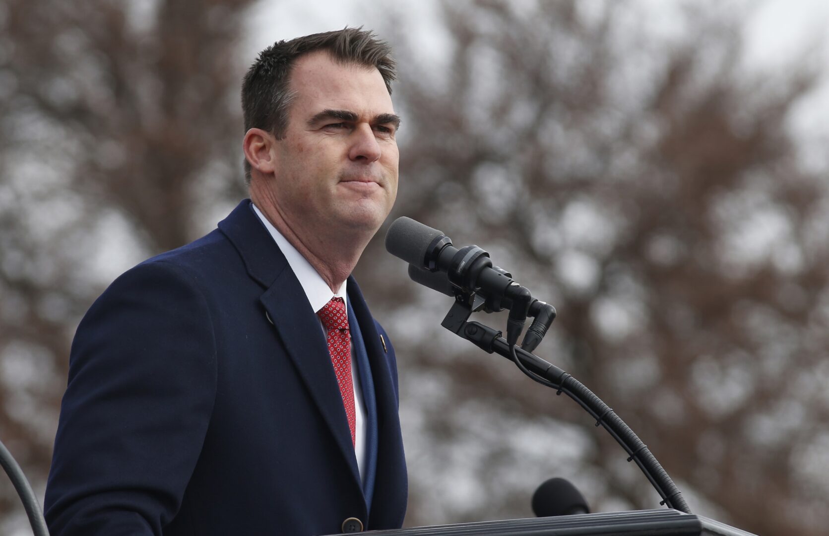 FILE - Oklahoma Governor Kevin Stitt gives his inaugural speech during ceremonies in Oklahoma City, Monday, Jan. 14, 2019. (AP Photo/Sue Ogrocki, file)