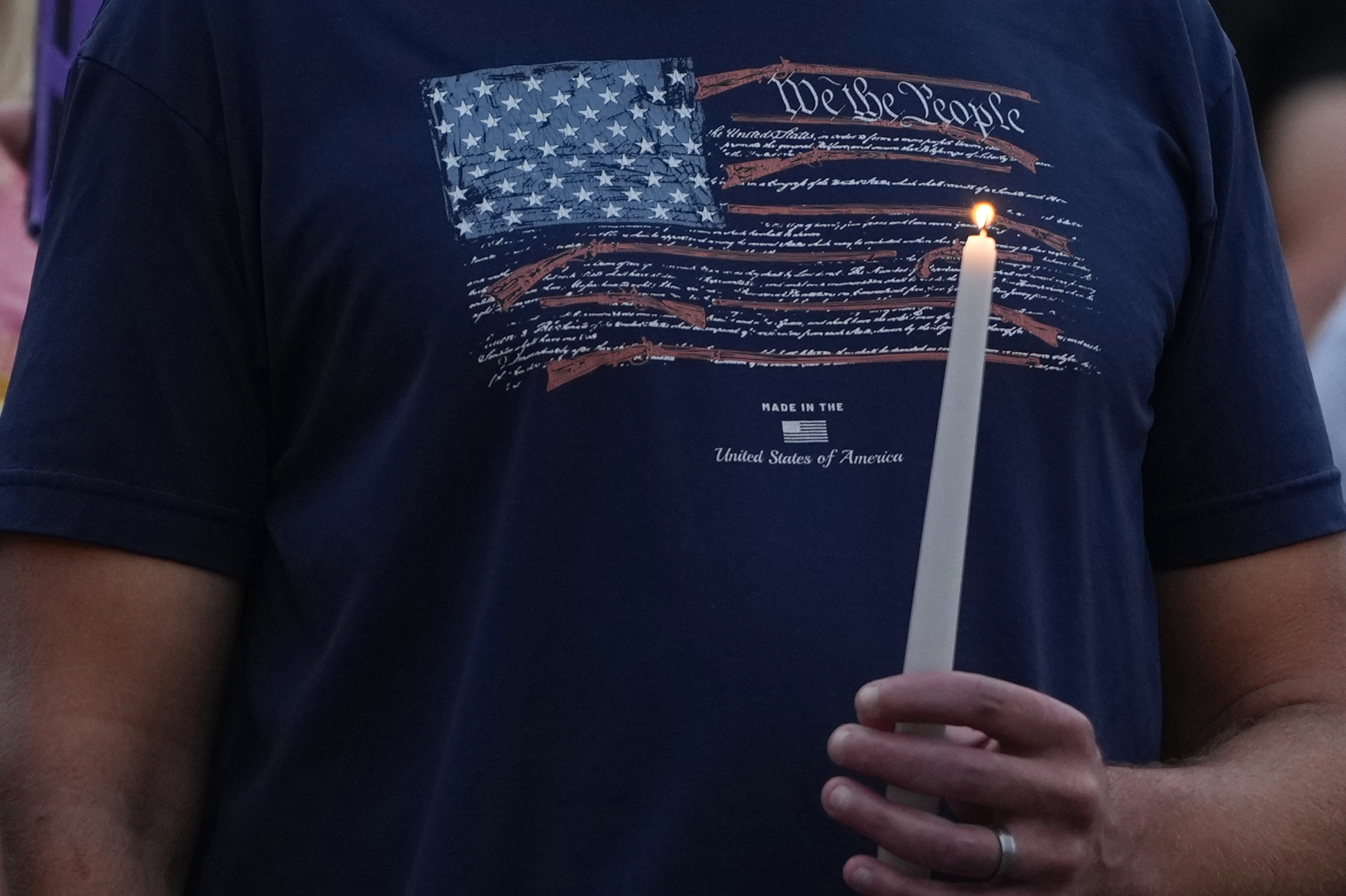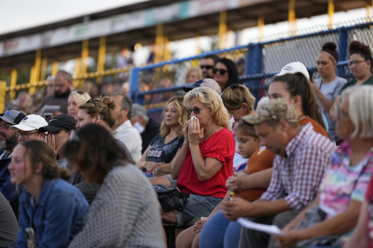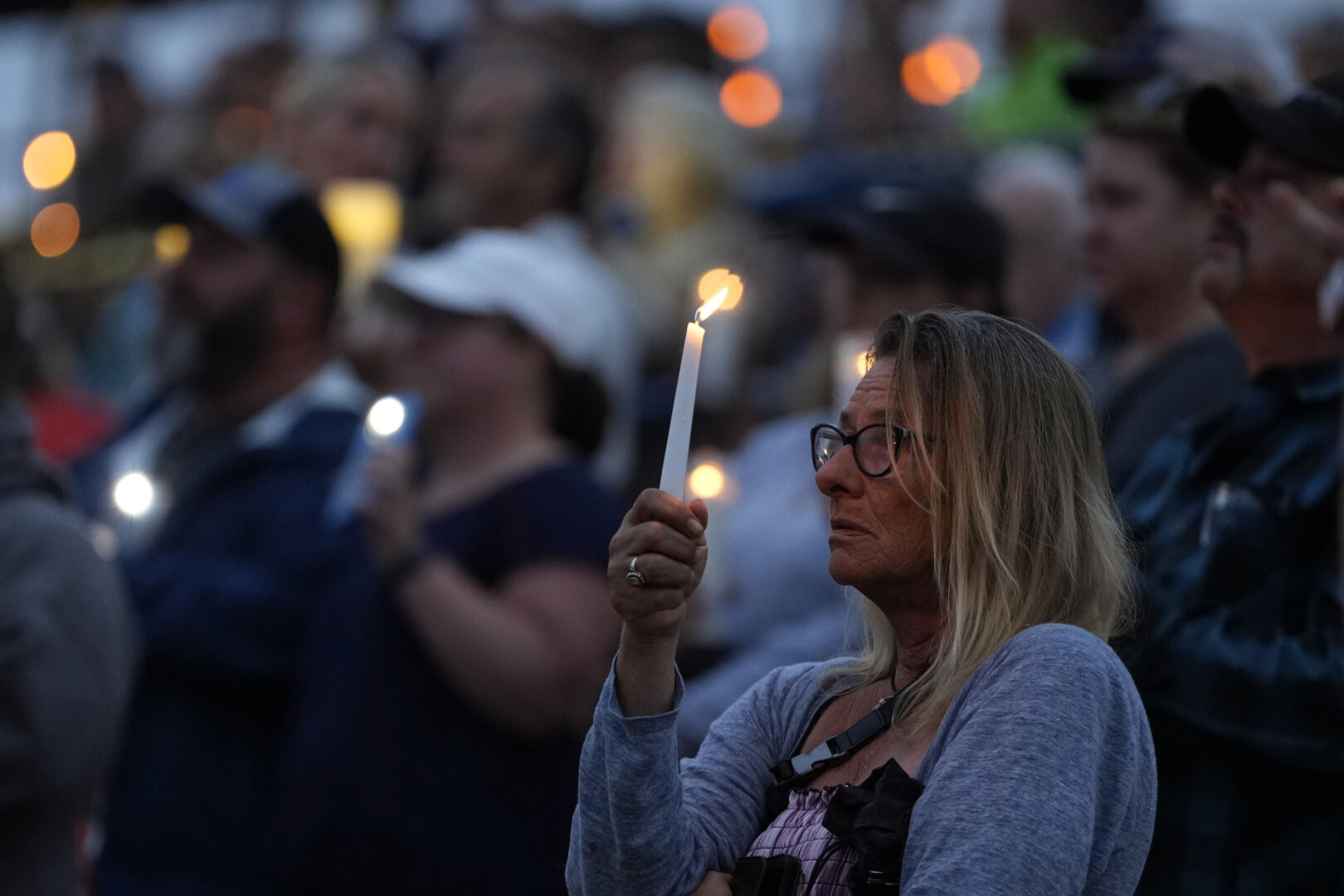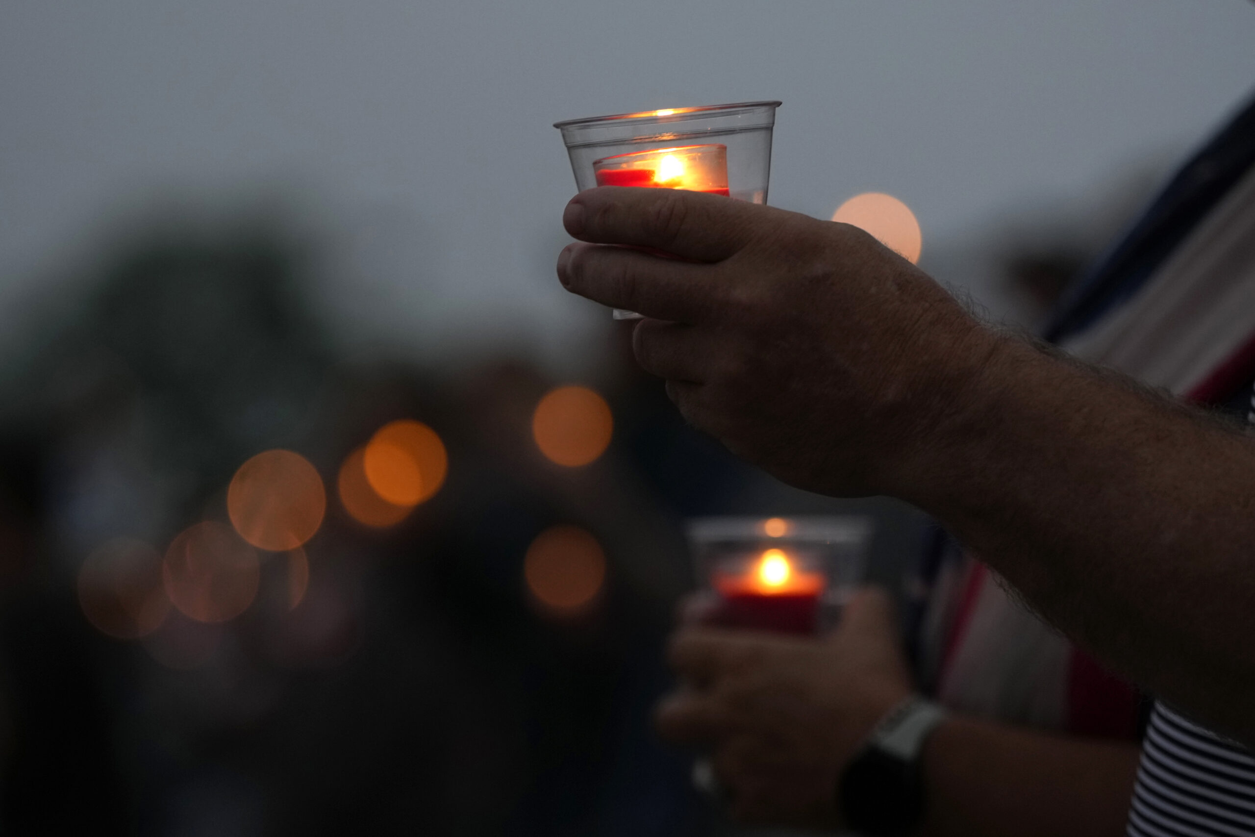 The vigil concluded with people in the crowd lighting candles and raising cellphones, glow sticks and lighters as Comperatore’s favorite song — “I Can Only Imagine,” by Christian rock band MercyMe — played while pictures of him and his family were shown on a screen.