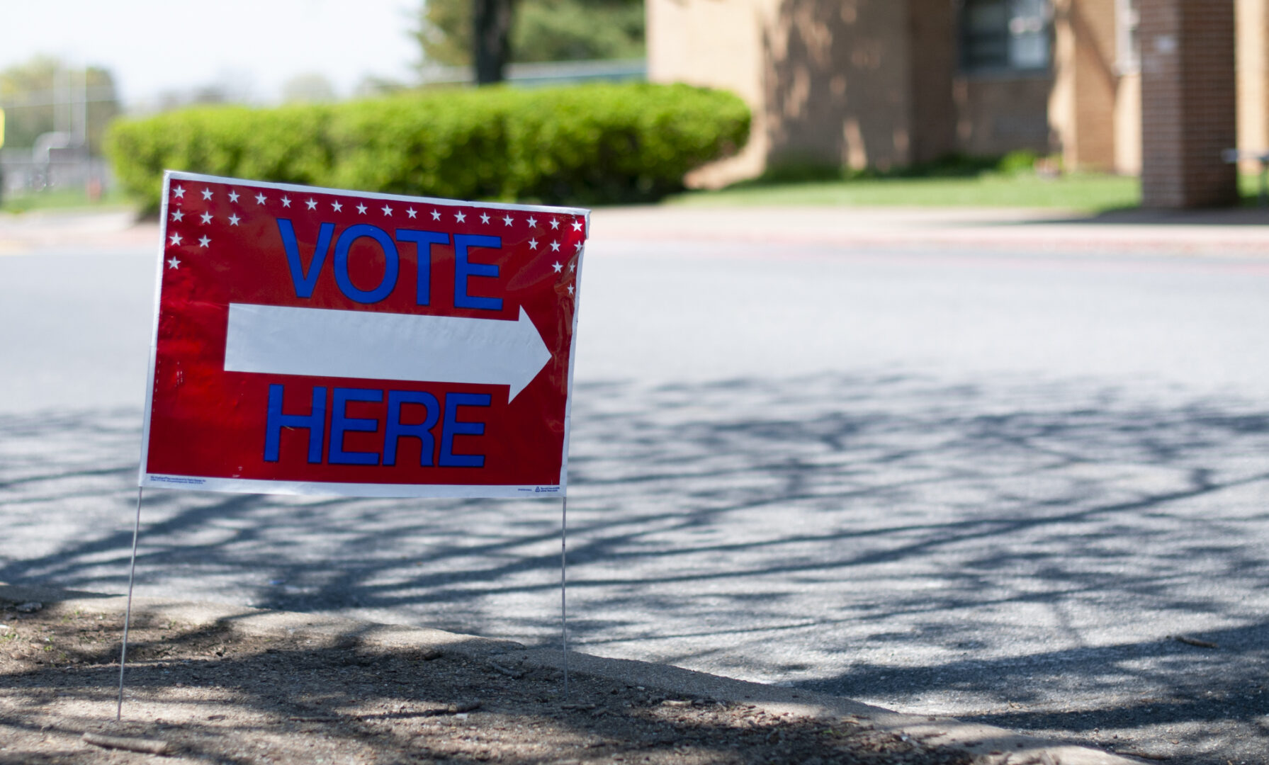 Vote here signs outside of Central Dauphin East Middle School in Lower Paxton Township during the Pennsylvania primary on April 23, 2024 (Jeremy Long - WITF)