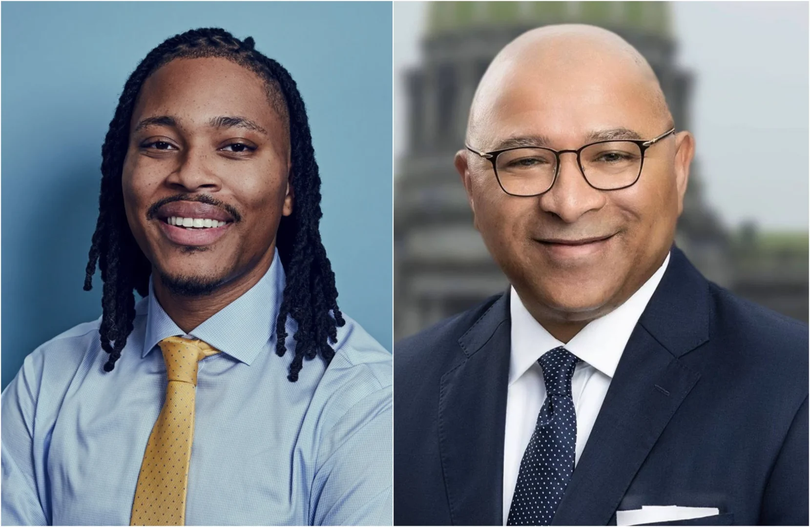 Democratic candidate for Pa. auditor general Malcolm Kenyatta (left), and Republican candidate Timothy DeFoor. (campaign photos)