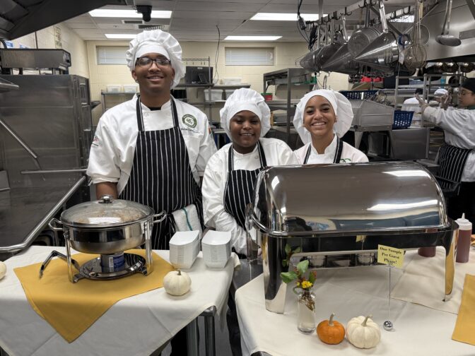 The program was named by students and is a four-year culinary program. Chef Claire Dacko, Culinary Arts Instructor, has been with DCTS for 11 years. The freshman students begin the course with the basics, and by senior year they become student chefs.