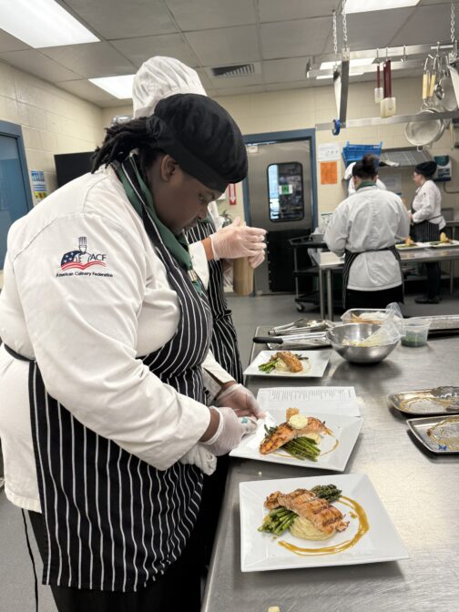 “They learn all of their foundational skills, knife skills, cooking methods, on through baking and pastry… How to work with different soups, sauces, vegetables, proteins when they’re younger, and then this is essentially their capstone project.”