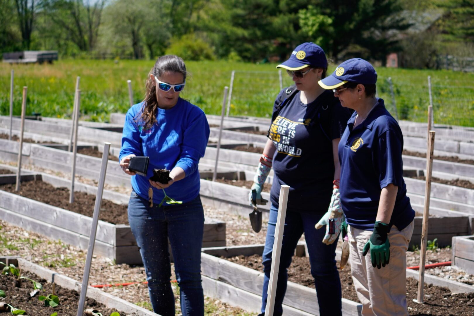 Garden of Health founder Carol Bauer and two other people at a farm.