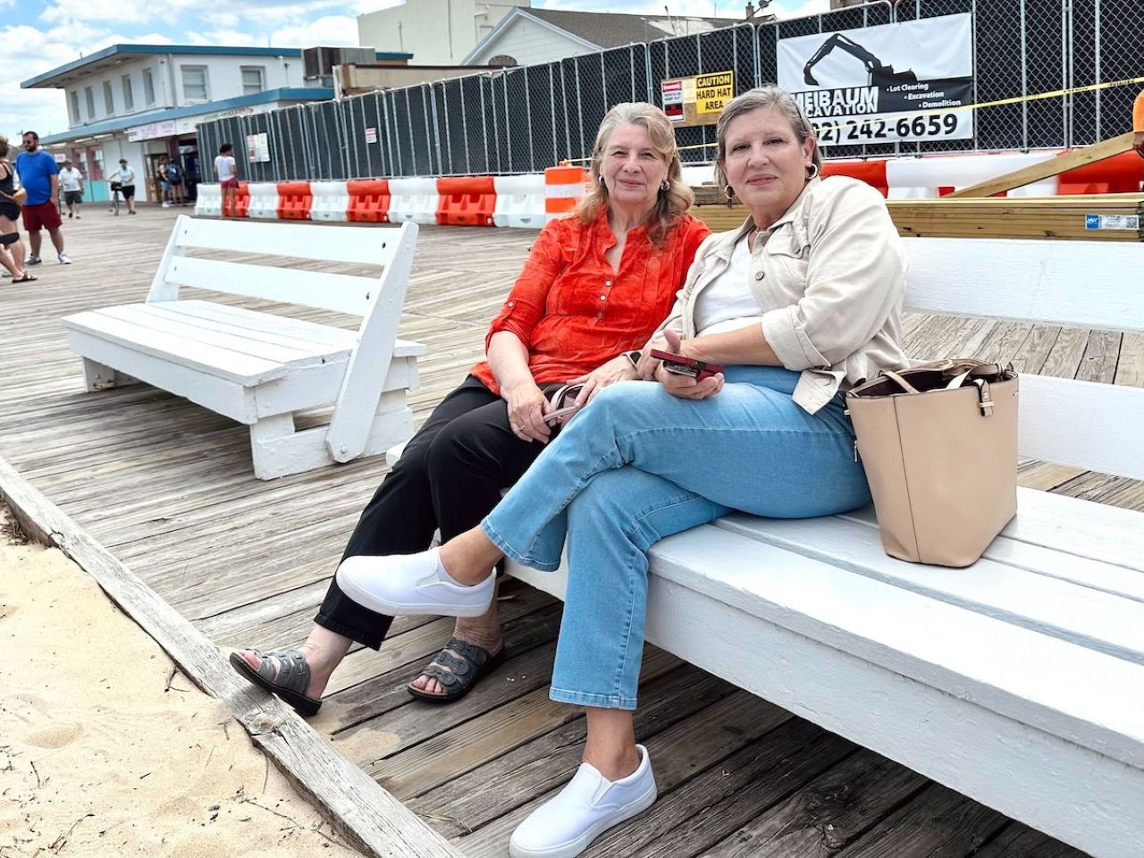 Pam (left) and Donna Walters visited Rehoboth Beach, a place Donna remembers fondly from childhood. While acknowledging the boardwalk is constantly evolving, they noted the timing of construction during peak season is less than ideal—but inevitable. (Johnny Perez-Gonzalez/WHYY)
