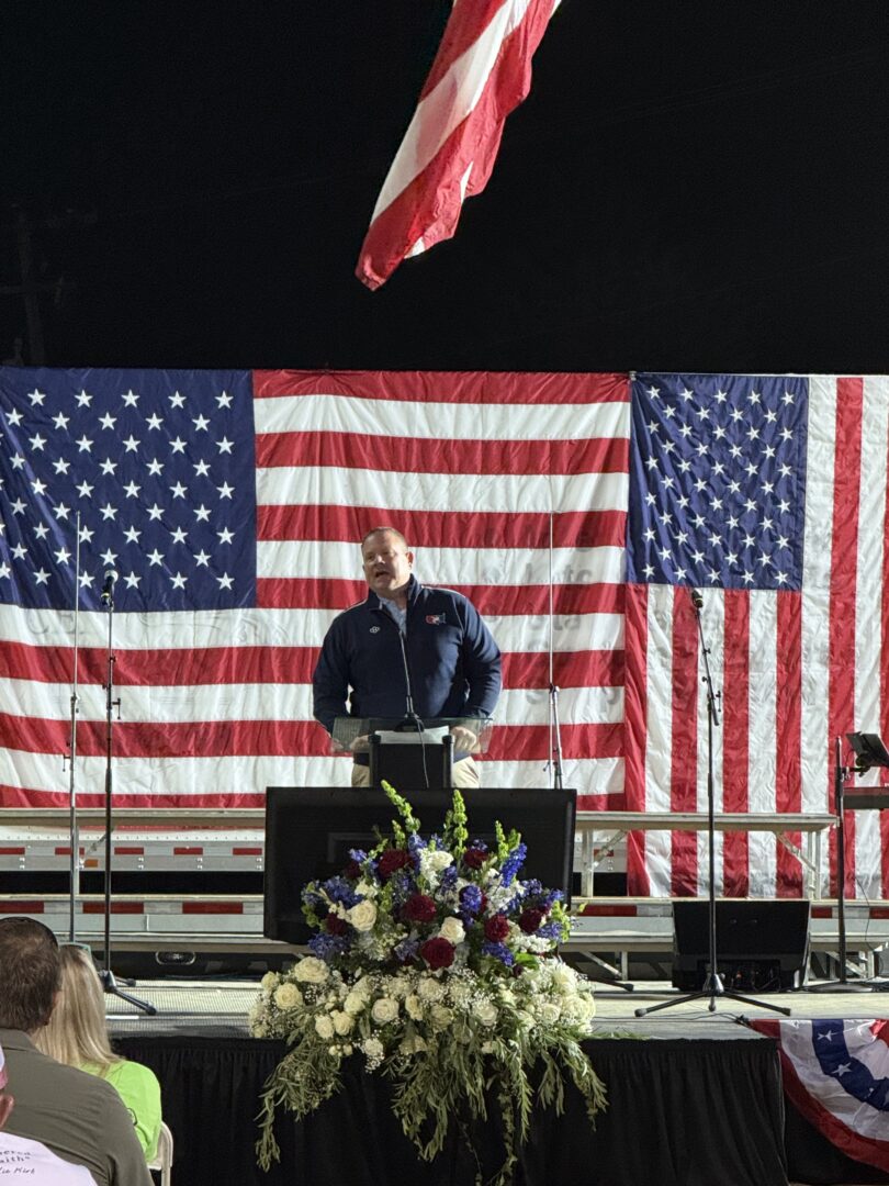Pa. Sen. Scott Martin, R-Lancaster, speaks at a vigil for Charlie Kirk in Quarryville on Sept. 21, 2025.