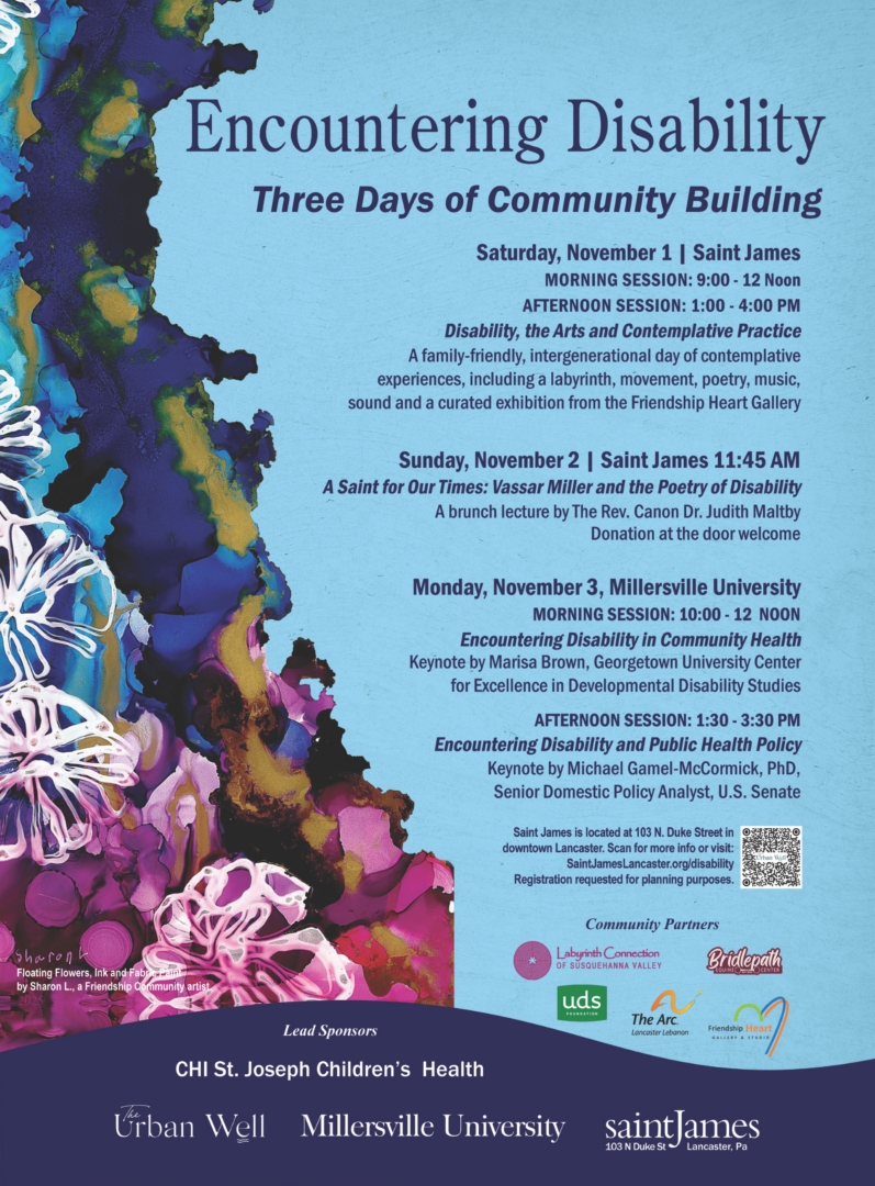 At St. James Episcopal Church in Lancaster, a new three-day program called Encountering Disability is sparking dialogue about faith, inclusion, and the human experience. The event, running November 1–3, brings together community partners, advocates, and educators to explore how faith communities can help bridge gaps between disability, policy, and public health.
