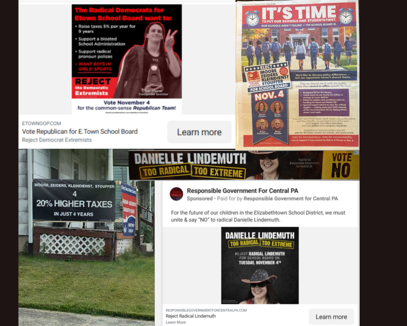 Political ads that have been seen online and in Elizabethtown that focus on Elizabethtown Area School District school board candidates.